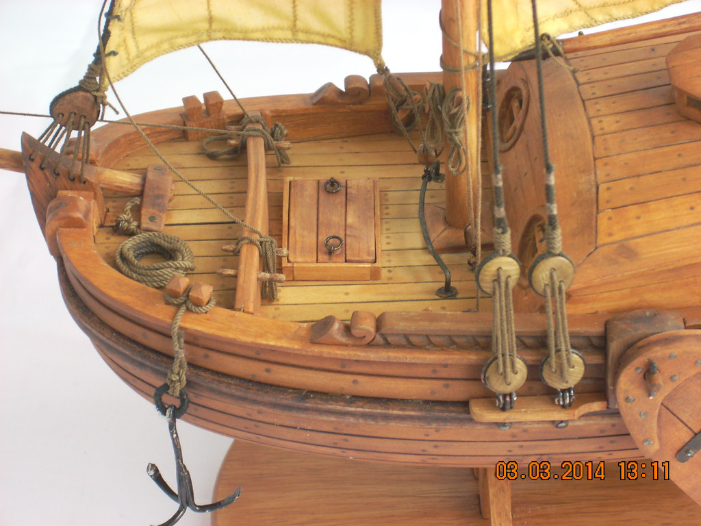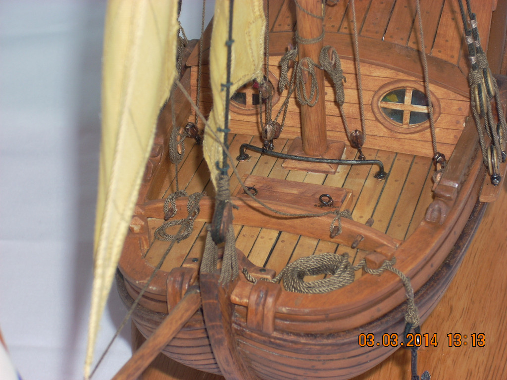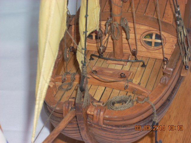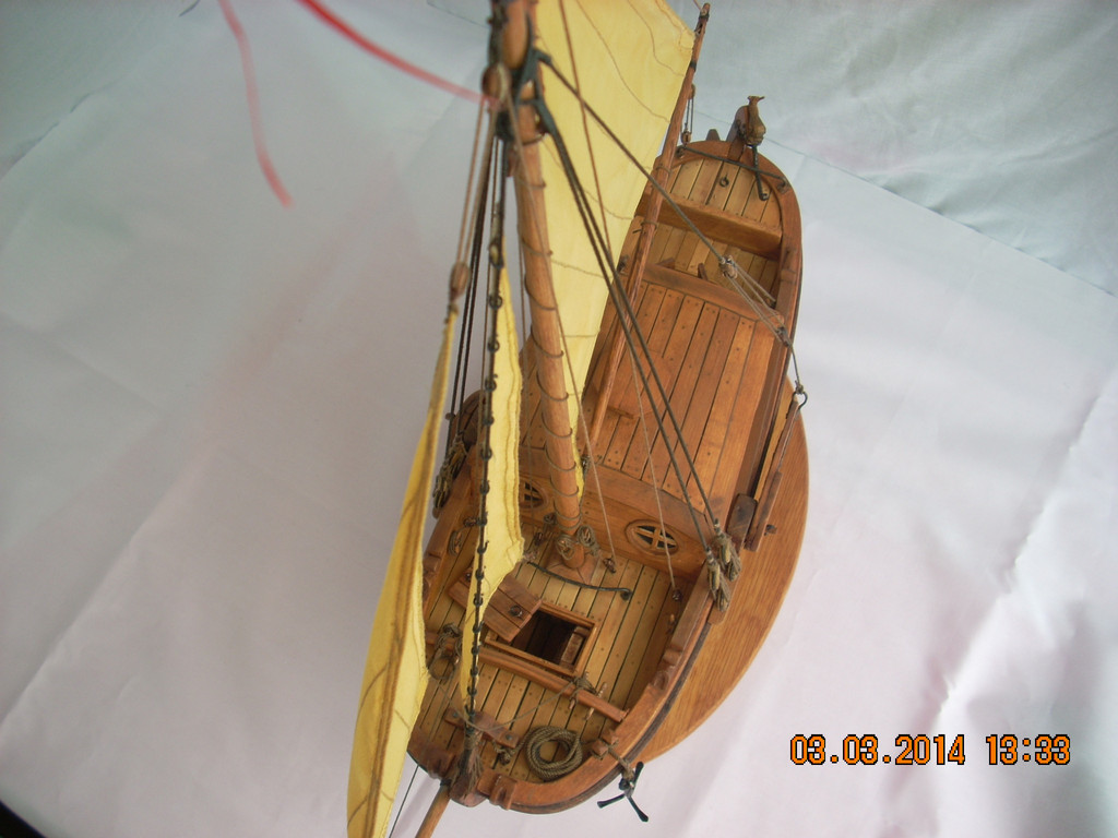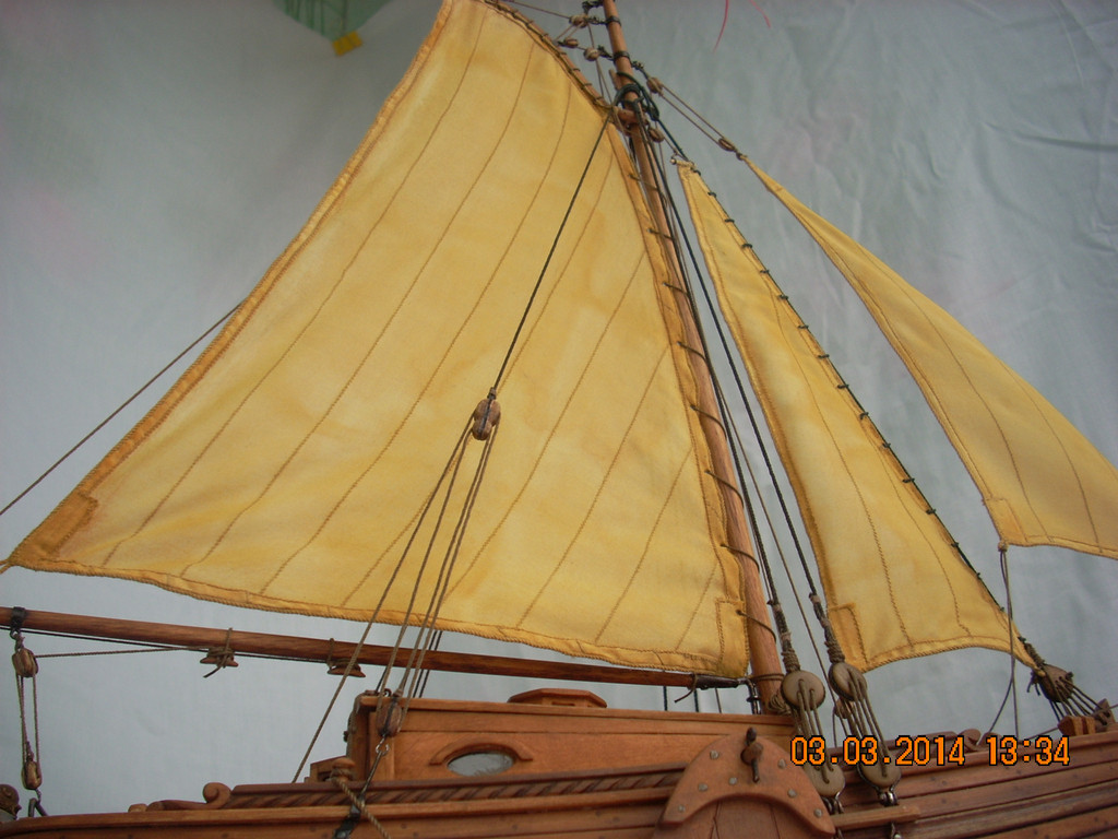 Модель просто замечательная!Кривить губу на паруса -это моя прерогатива/вы уж извините/ ,но в данном случае и у меня претензий нема.Ну разве что надуть их/паруса/посильнее....Но....Ветер спал...