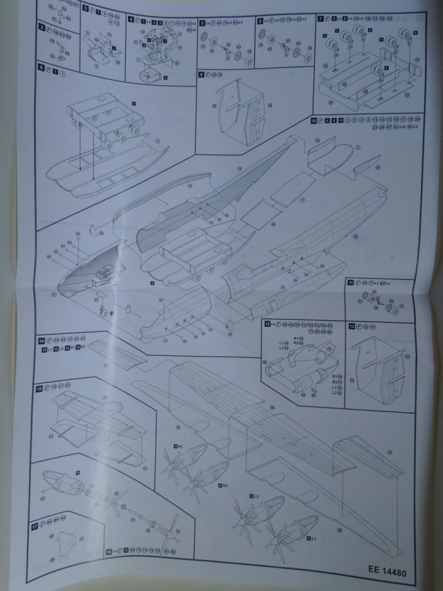 Доброго времени суток коллеги. Выставляю вам обзор модели знаменитого самолёта от Восточного экспресса в 144м масштабе. Упакована модель в наполовину стандартную для ВЭ коробку,верх из мягкого картона а вот низ сделан из более твёрдого. В коробке литники распакованы по пакетикам согласно стадиям и пошаговости сборки.Схема сборки,декаль,и схема окраски. На схеме окраски указаны цвета красок без привязки к какому-либо производителю,а вот в схеме сборки,указано,что модель в носовой части следует огрузить,а масса груза не указана. Придётся подбирать вес.Теперь о пластике. На первый взгляд,все выглядит достаточно достойно. Пластик довольно хорошего качества,выделен внутренний крой вроде-как нигде не "замылен". Облоя совсем не много.Утяжин вроде как нет,а вот на некоторых деталях есть задиры как на плохо обработанной древесине. Но это все вполне не сложно подправить шкурочкой. Детализации особой как я вижу нет,но для этого масштаба то-что сделал производитель вполне нормально.При желании мастера доработают))). О стыкуемости деталей пока сказать нечего,сборка покажет. Пока только надежда,что всё будет без проблем. Ну и в завершении хочу поблагодарить нашего коллегу и моего доброго приятеля Павла Самойлова за этот подарок!