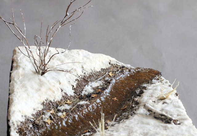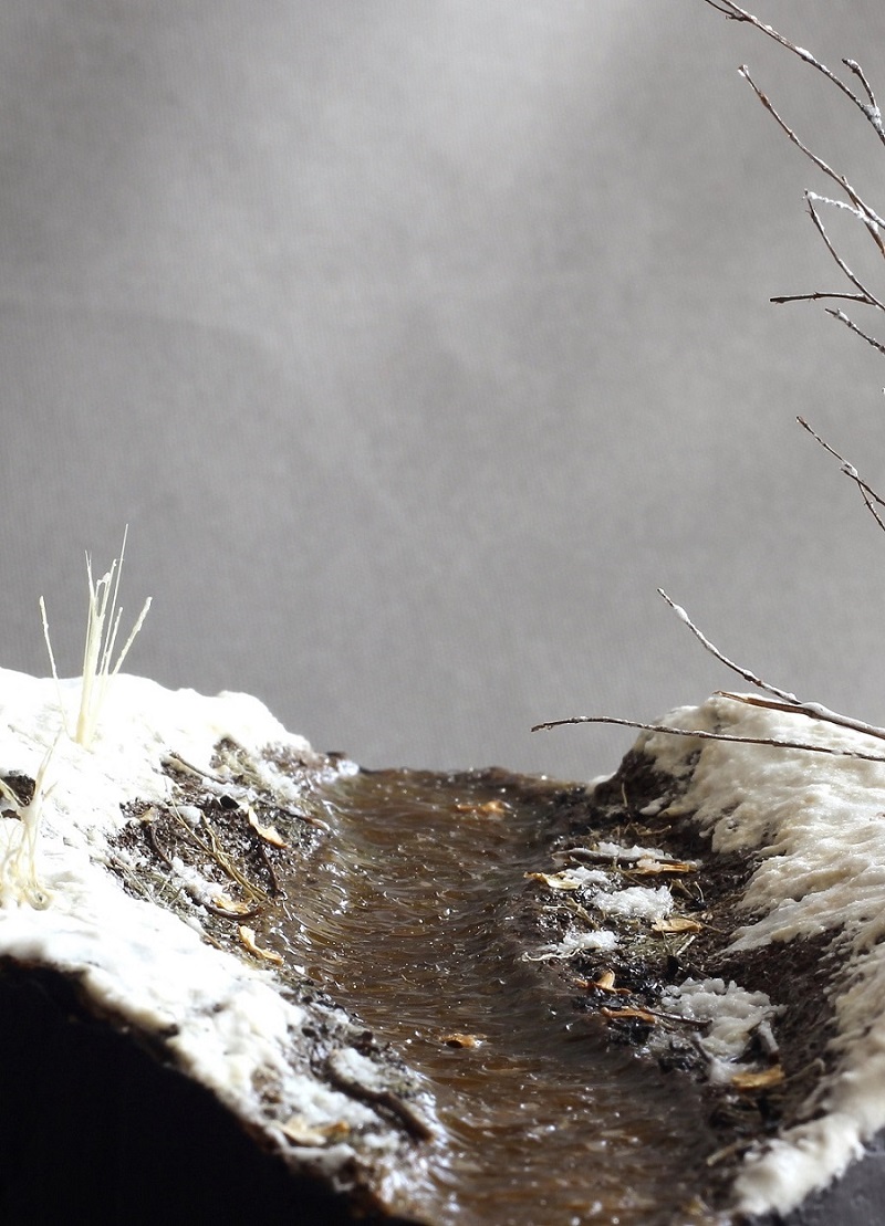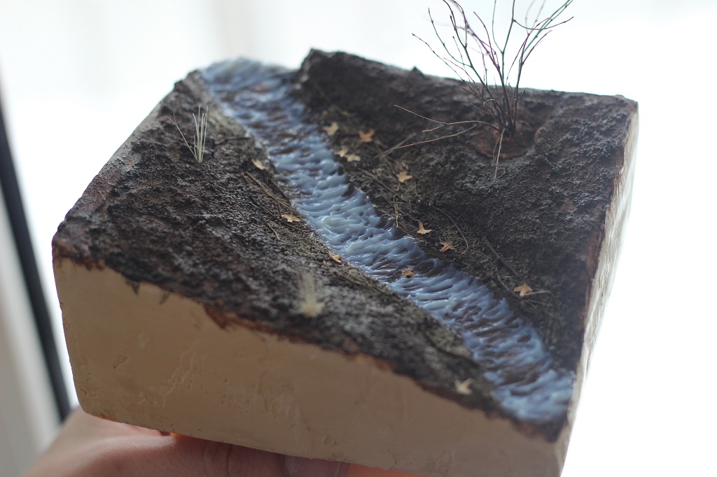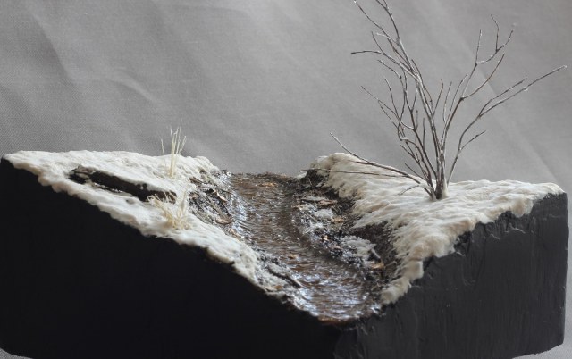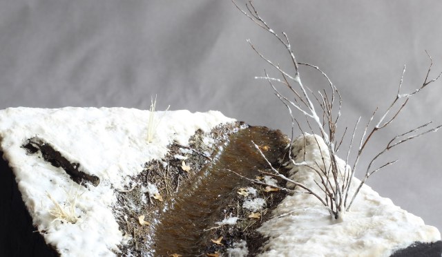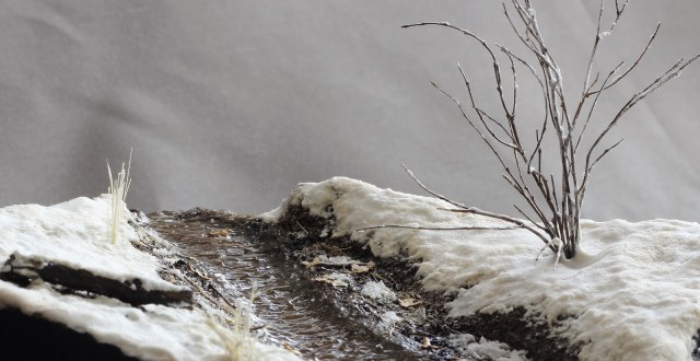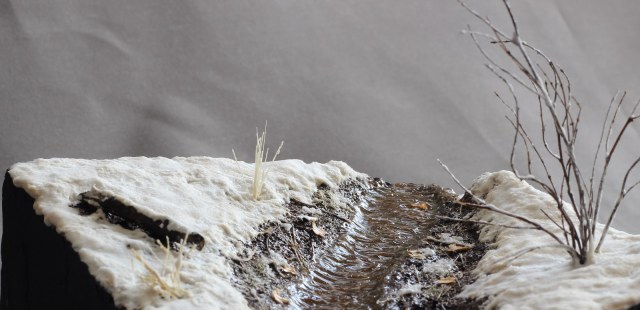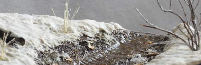 Доброго времени суток! Представляю свою очередную работу. Захотелось мне сделать что-то отвлечённое от военной тематики, немного отдохнуть так скажем, и решил создать кусочек весенней природы. Задачей было изобразить ручей ранней весной, подтаявший снег вокруг, местами прошлогодняя листва, заснеженный кустарник. Снег был изготовлен из смеси соды, ПВА, лимонной кислоты и акриловых красок. Для имитации ручья сначала была изготовлена форма из гипса с рельефом поверхности воды, затем была залита подкрашенная в цвет воды эпоксидная смола. В момент затвердевания эпоксидки, гипсовая форма находилась под разными углами наклона для того что бы создать рельеф поверхности воды. Удовлетворительного результата я достиг с третьего раза. Первый раз, эпоксидная смола не хотела твердеть, хотя отвердителя я добавил больше чем нужно. Не помогло, видимо брак. Второй раз, после полной кристаллизации, эпоксидка стала белёсой, и поверхность воды имела далеко не гладкую текстуру. После полного высыхания эпоксидной смолы, на поверхность я нанёс акриловый гель для имитации волнения воды при течении. Кустарник и бревно – масштабные веточки натурального происхождения из личных запасов. Прошлогодняя листва – семена берёзы. Основание диорамы сделано из нескольких слоёв XPS склеенных между собой. Почва - кофе и песок, окрашенные акриловыми красками. Вроде ничего не забыл, всем приятного просмотра.