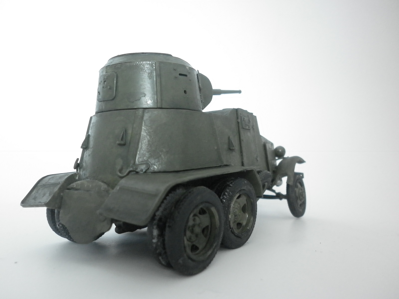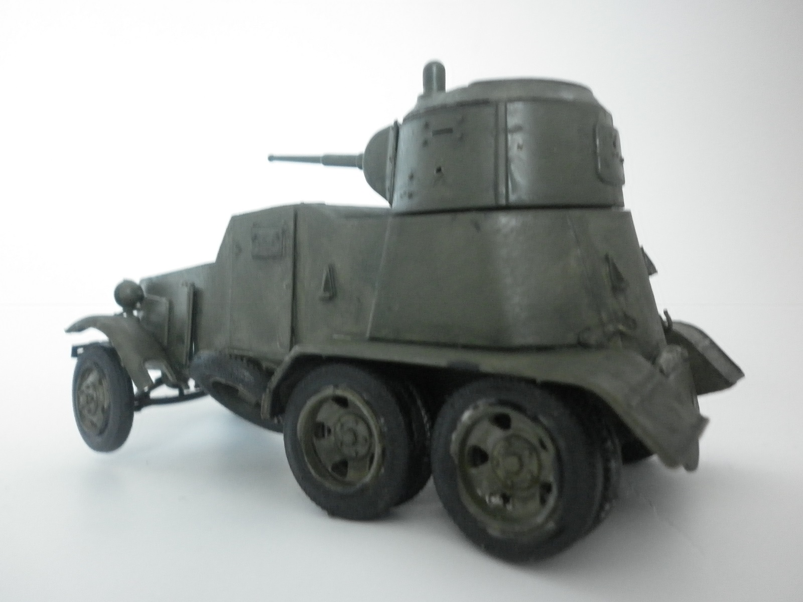 У вас какие то другие фотки БА-10?практически на любых фотках БА-10 видно где располагались запасные колёса, а если бы вы немного почитали, то знали, что запасные колёса еще и свободно вращались, помогая не садится броневику"брюхом" на препятствия....а если ещё и немного напрячься, можно найти и чертежи по данному броневику....