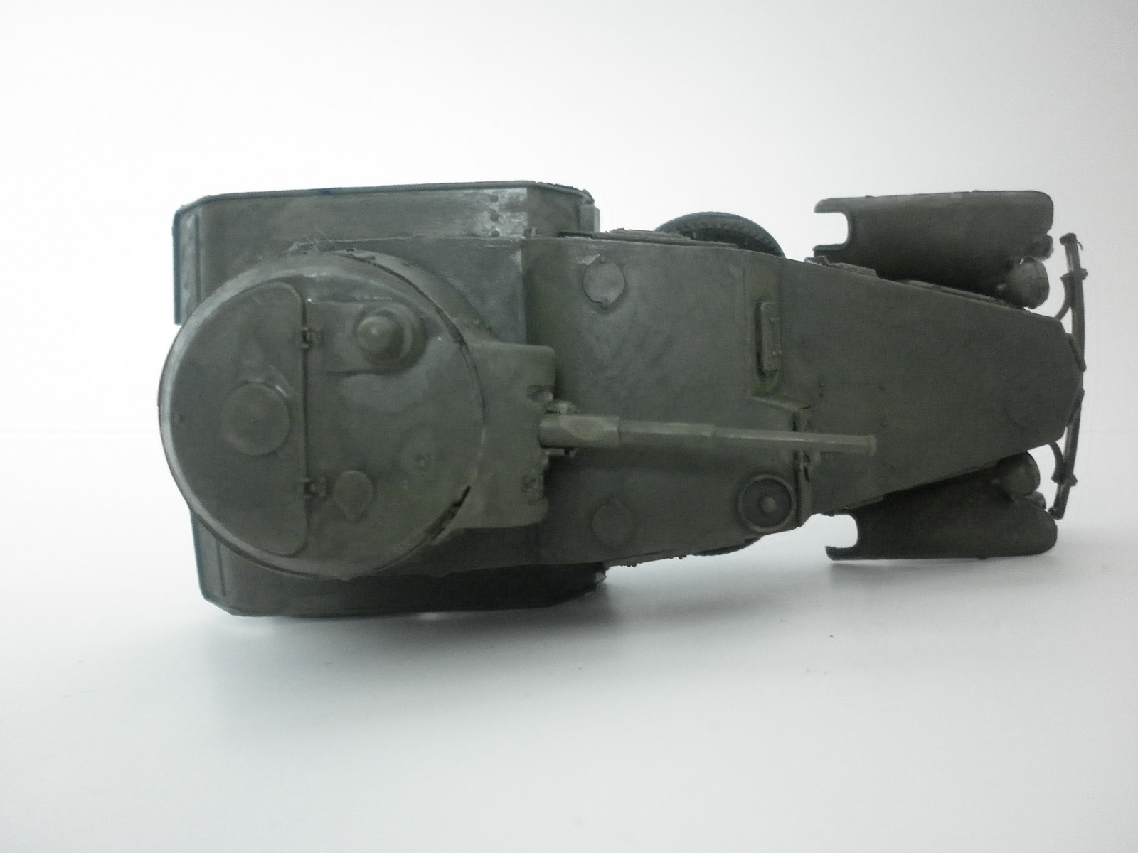 Это как раз для раздела Ужасы нашей каропки. Очень большие щели, не ровно стоит, Плохо окрашены колеса, не рассверлен ствол, и что с краской? Очень много разводов! Да и фото тёмные, ничего не разглядеть!