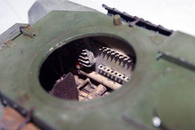 Класс! Гребни гусениц не были такой "скруглённой" формы. Под-за-острить бы их...Нагар на стволе выполнили умышленно, для эффектности. Но Вам прощается )) Мелочь... Работа очень редкая, и исполнена на высоте!