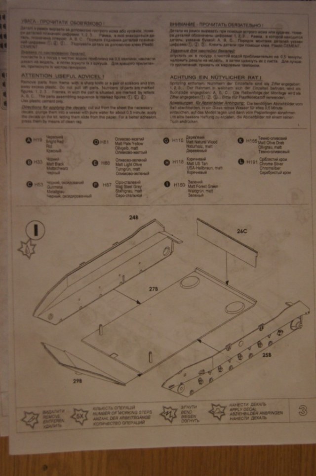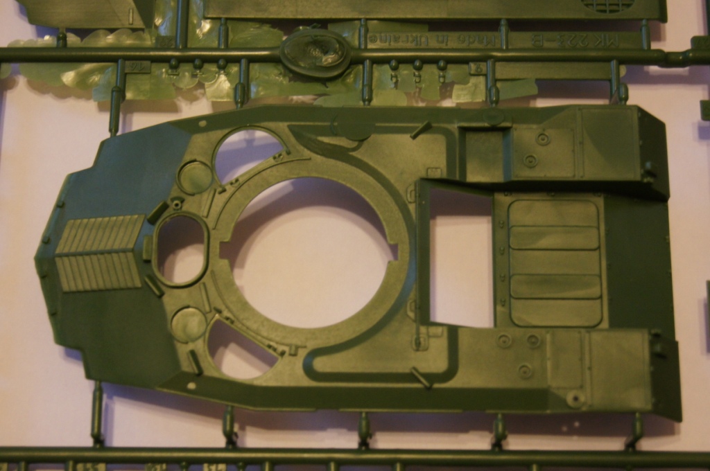 Хорошее качество это вы загнули. И по геометрии есть косяки, корпус еще ложится в чертежи, а башня на 2-3 мм меньше положенного. И декали у меня в наборе попались все треснутые.