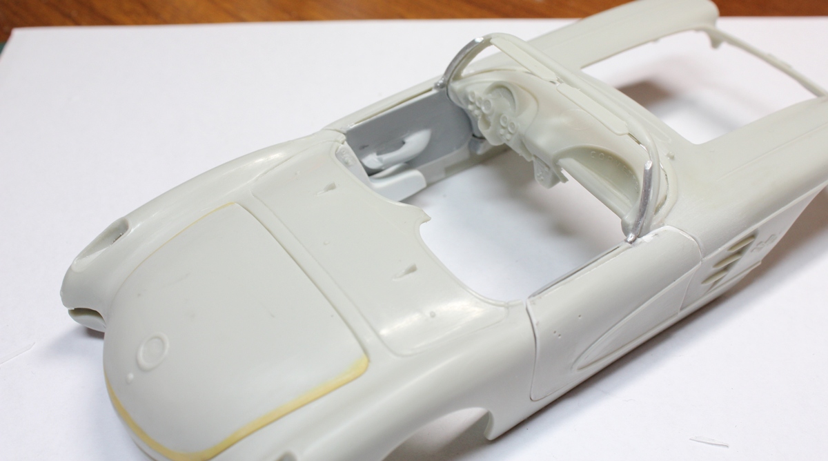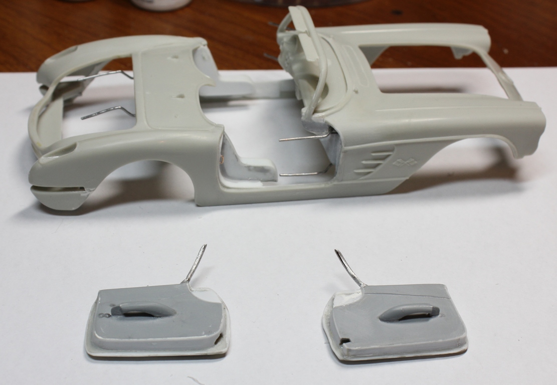 Решил вырезать двери, багажник. Увлекся. Теперь надо было сделать края дверей максимально ровными, на что убил массу времени. Применял и эпокси от Тамии и Германии, остановился на тонком тамиевском пластике 0.2 мм. Полностью перерезал и перепилил салон. Добавил дверные карты, ручки. На этом остановился т.к. больше деталей не было.