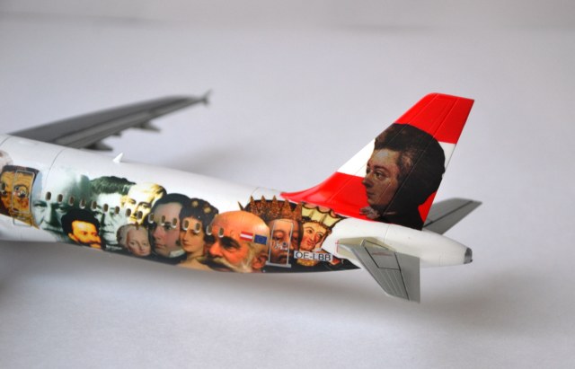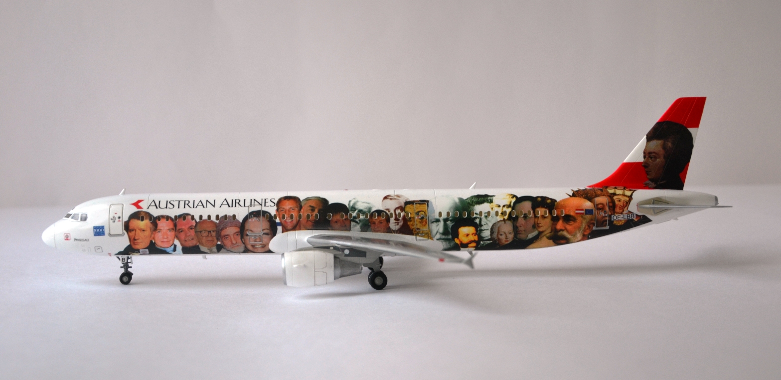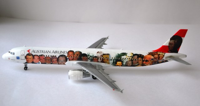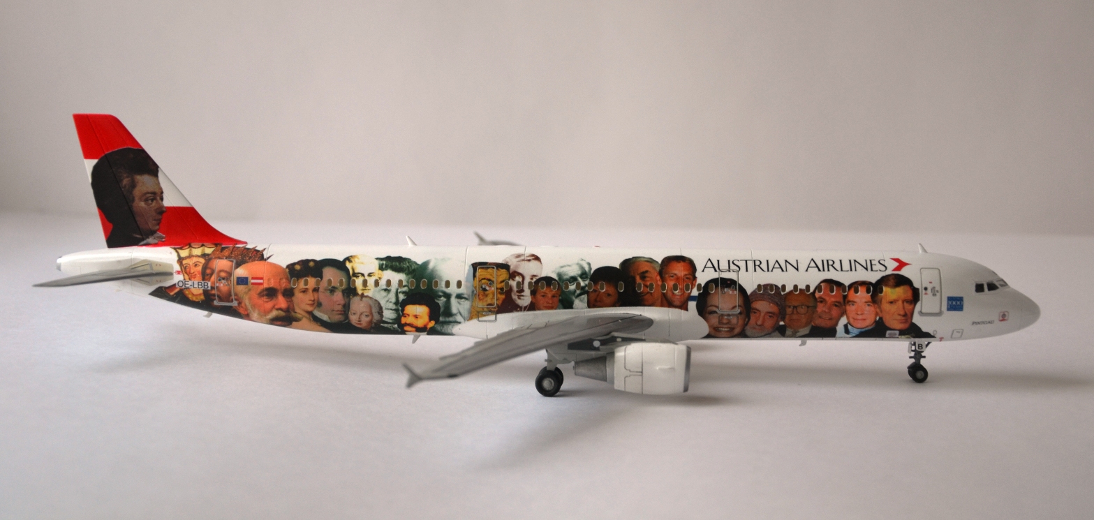 Ну это зря Вы... Вполне себе стильная специальная ливрея. Лица в ряд, - как будто они все на этом самолёте летят))) Вызывает уважение даже тот факт, что маленькая страна Австрия выпустила такую ливрею с выдающимися людьми, как выражение гордости за свой народ.