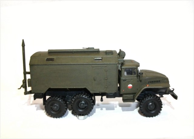 Если ещё надумаете собирать уралы,то можно рассверлить глушитель,сделать брызговики из фольги и много других доработок,сделающих модель ещё более интересной.
