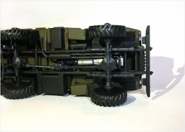 Богдан,поздравляю.Для второй модели - очень неплохо!единственное что хотелось бы посоветовать - зачищайте все швы и стыки прессформ на деталях,даже если уверены что их не будет видно.(в конкретном случае их видно на рессорах и двигателе)В целом очень хорошая искоробка.Пыльники под передними крыльями красятся в цвет кабины.