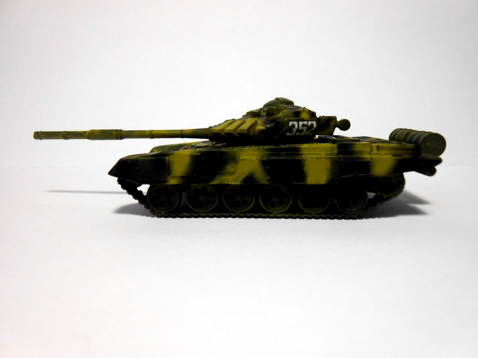 Всем доброго времени суток. Представляю вам своего клопа в сотом масштабе, модель от звезды, весьма хорошего качества, деталировка просто отличная, покраска осуществлялась красками мастер-акрил 55 ( защитный, базовый цвет ), 18 ( немецкий жёлто-оливковый, для камуфляжа ), и 20 ( чёрный, для камуфляжа и гусениц). И ещё: в коробке лежит Т-72БМ, а не Т-72Б как написано, но это не делает модель хуже. Вроде бы всё(=. Приятного Просмотра(=.