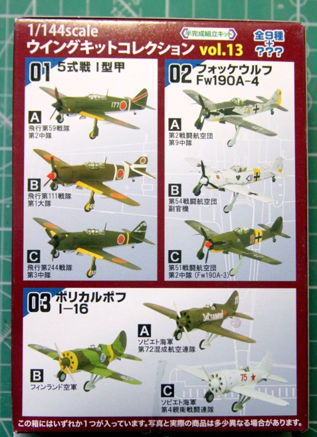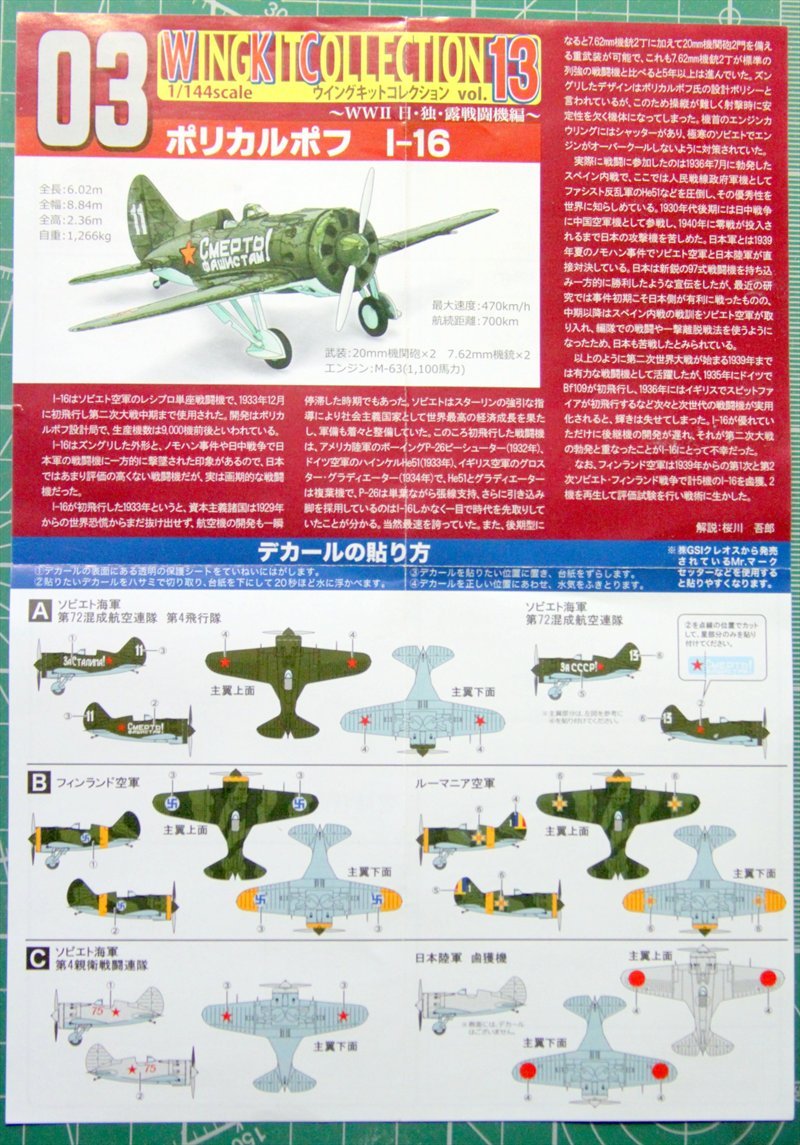 Крайний выпуск,в состав которого входят- И-16,ФВ-190,и Ки-100, это подтверждает. Выпуск предлагает по три машины в разной окраске,выбрал машину в окраске 72 САП авиации Северного Флота..
