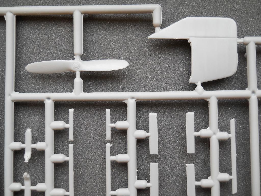 Два литника представляют собой достаточно аккуратное ЛНД для того периода. Так, например, со всеми подробностями выполнены поверхности крыльев. В наборе присутствую детали из смолы - хорошо и подробно отлитые. Вакуумформованные козырьки остекления даны в двойном комплекте. Декаль отличного качества на два варианта: французский и португальский. Инструкция по сборке и окраске вполне подробна и понятна.