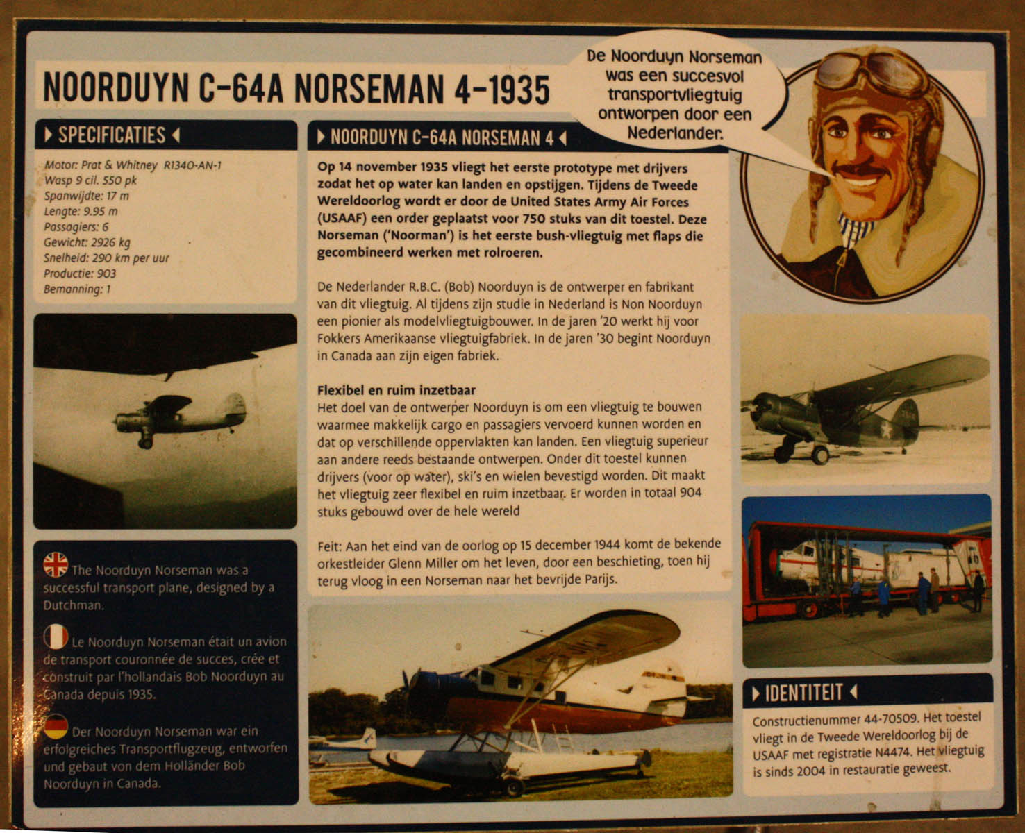 Очередной экспонат из Голландского музея авиации Nationaal Luchtvaart-Themapark Aviodrome, канадский самолёт Noorduyn C-64 “Norseman”.