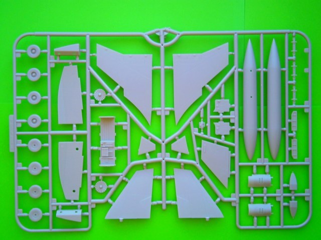 В красочной картонной коробке находится семь литников с деталями модели самолета из светло-серого цвета и один литник из прозрачного пластика это остекление фонаря кабины пилота, БАНО. Все детали хорошего качества, имеют тоненький крой,присутствует детализация в виде заклепочных швов,но кое где придется пройтись скрайбером чтобы поправить крой,кое где он замылен .