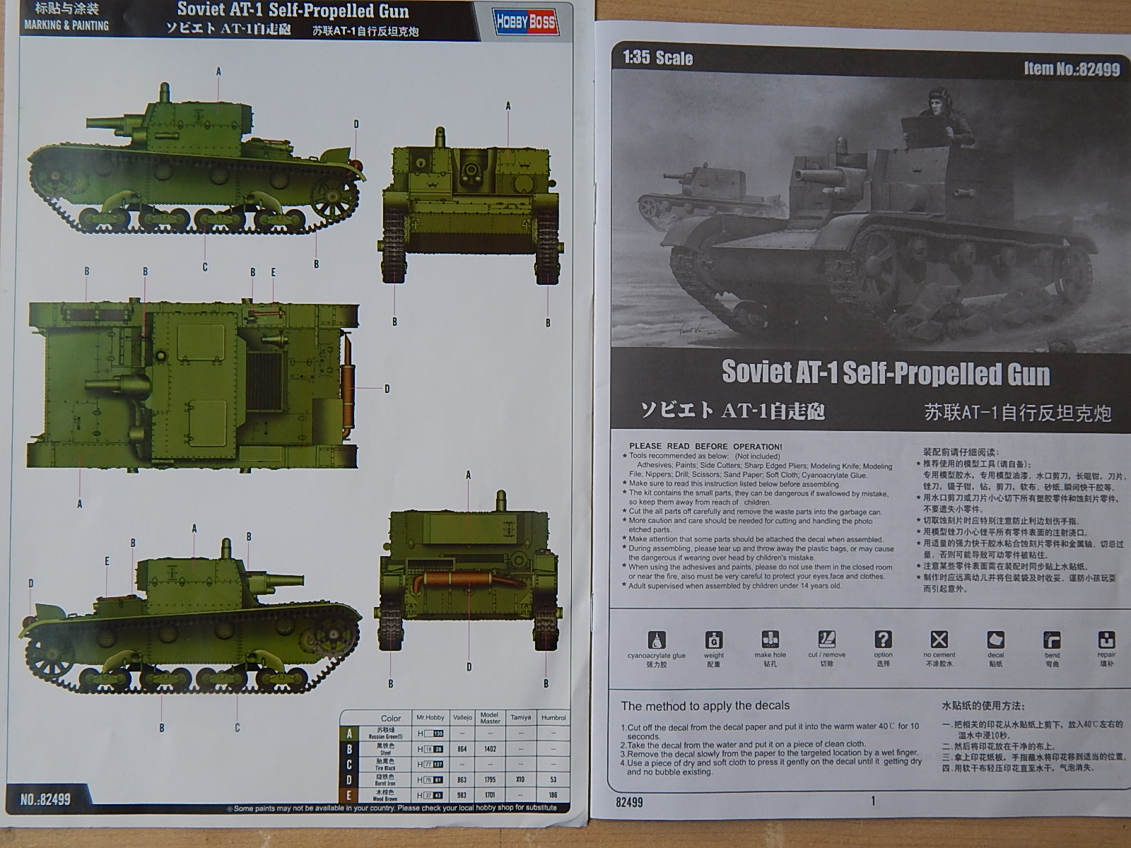 Неплохой довольно таки набор АТ-1 от ХобиБосс. Очень понравилось литьё модели(утяжины и все радости моделиста остались только у ВЭ,макетов и разных фирм кустарного производства))).Приятный на цвет и ощупь пластик. Толкатели с тыльных сторон деталей.