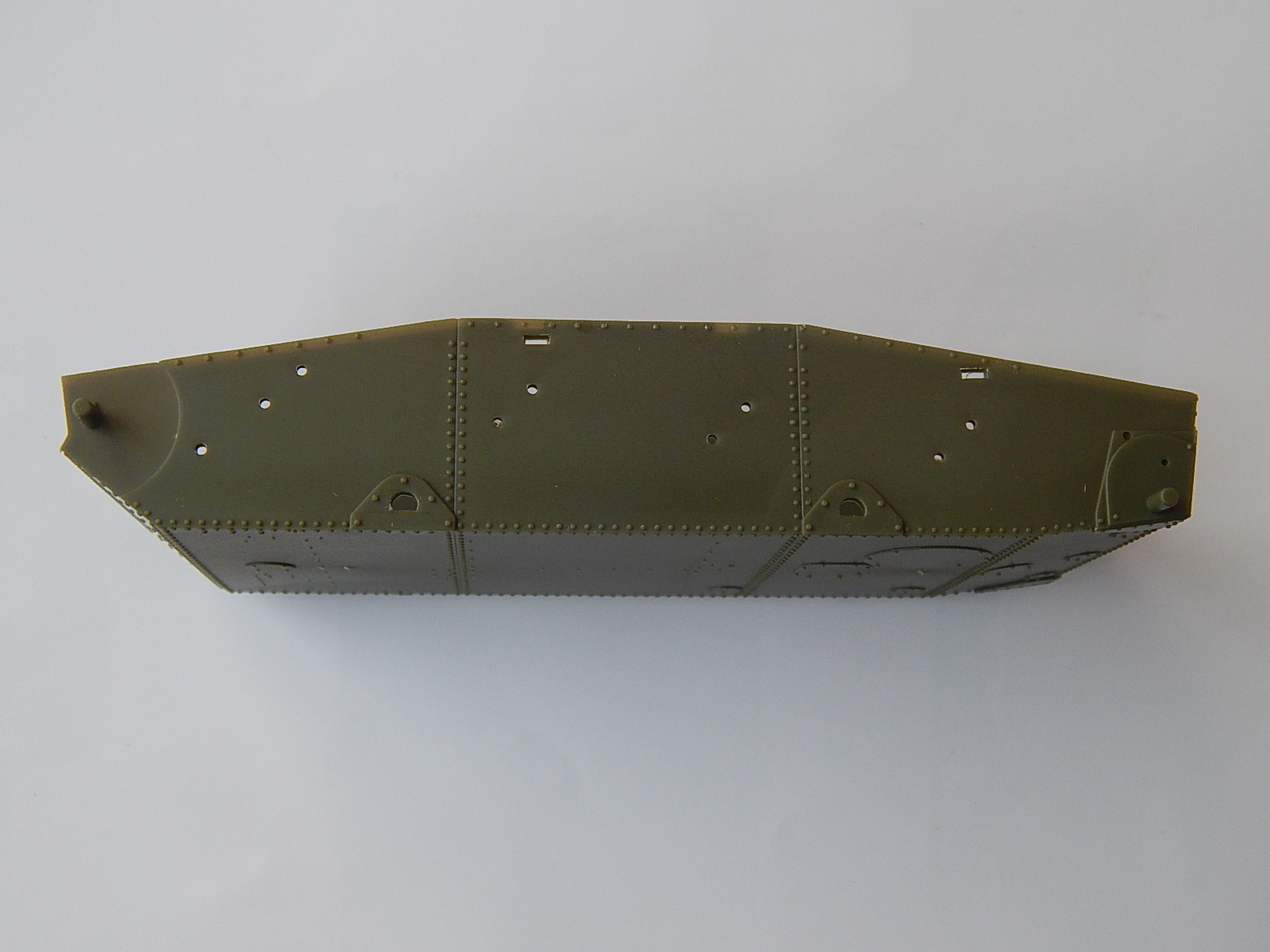 Хорошая модель! Собирается, как и вся серия Т-26-х от ХБ, очень здорово. Маленькие нюансы могут возникнуть при сборке поддерживающих катков: у всех собранных мной моделей Т-26 от ХБ проблемы с соосностью двух половинок катков после склейки - лечится проходом сверла на 1,1-1,2 мм и в одной модели мне пришлось повозиться с надгусеничными полками, не хотели ровно и без щелей прилегать к корпусу)))), видать, чуток поведенные были.... Хотя, если с точки зрения матчасти подходить, кое-что и у ХБ надо допиливать.... Наверное, позже тоже такой возьму, а то у меня конверсия на базе "звездовского" Т-26, надо бы поменять))))). Кстати, китайцы правильно сделали маску орудия - именно такой формы она была на клепанном корпусе, а маска с прямыми боковинами ставилась на сварной корпус (как в конверсии у "Оружейника"