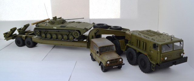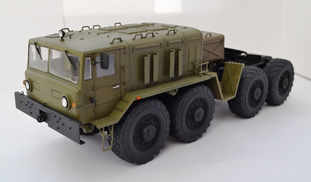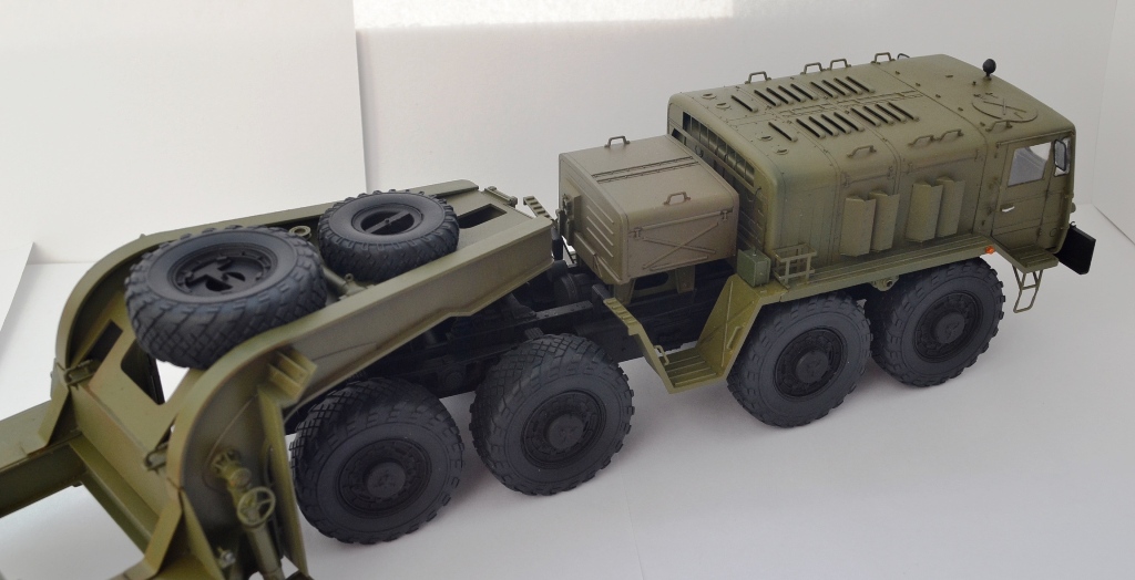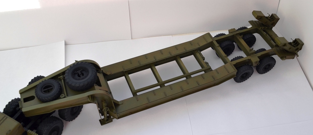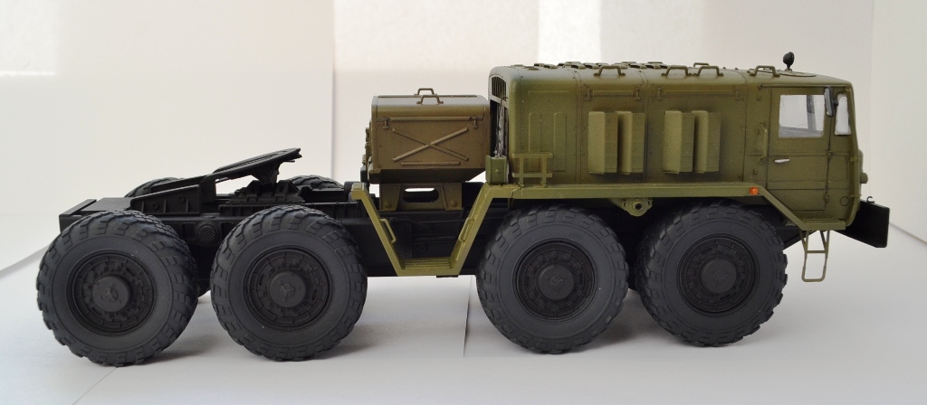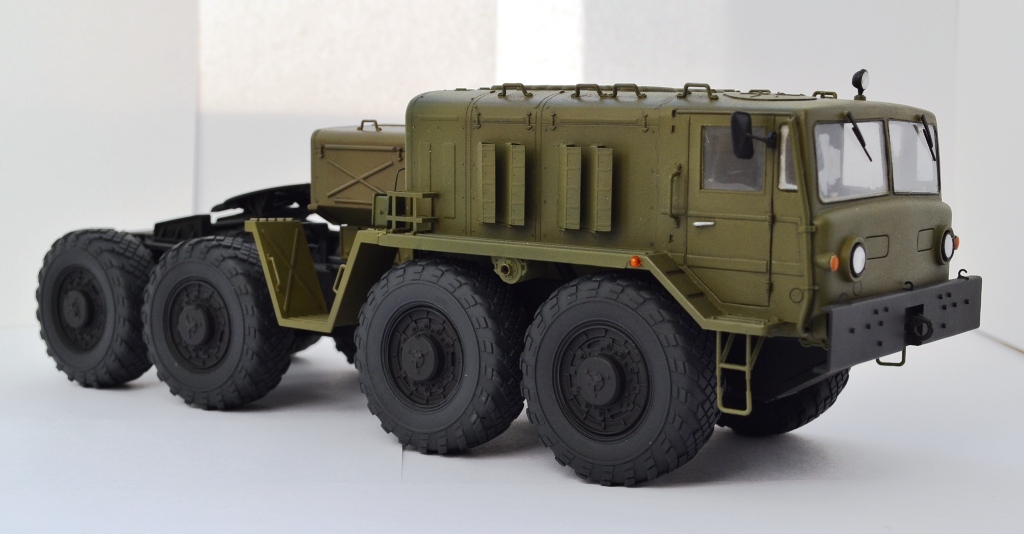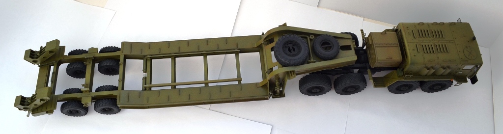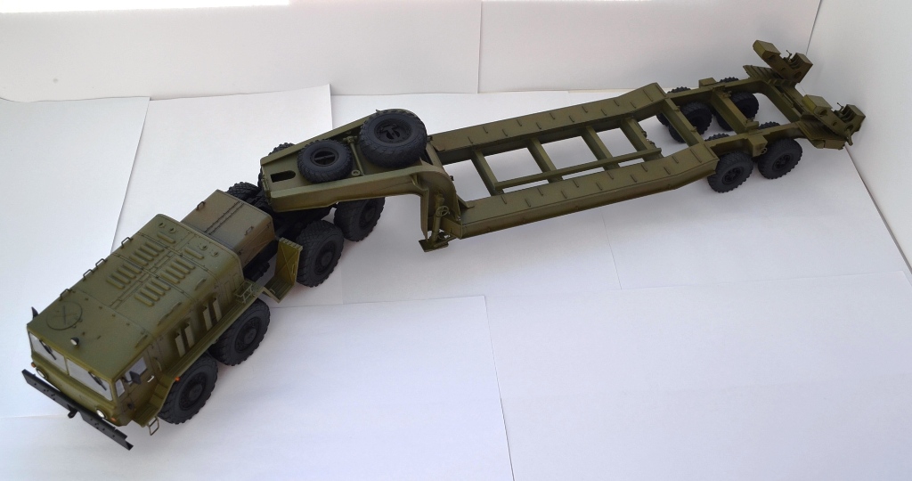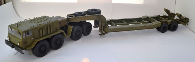 Выставляю на Ваш суд данного великана, модель от Trumpeter, МАЗ 537г с тралом ЧМЗАП. Модель доработкам не подвергалась. Заменил только световые приборы: передние фары - Elf, остальные световые приборы - SKP model.