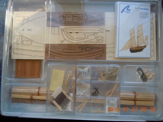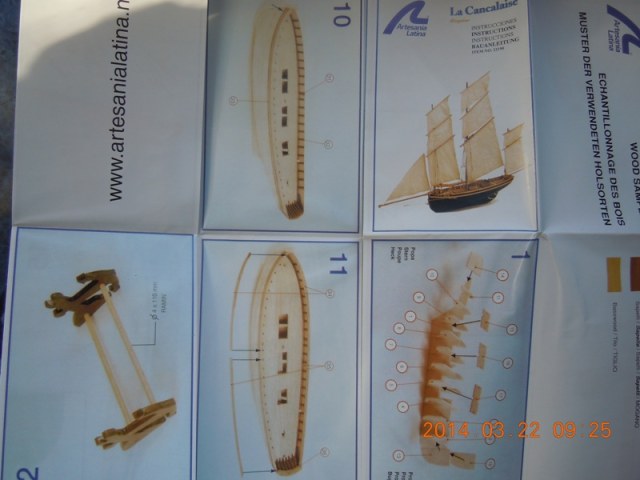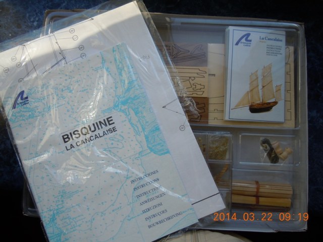 - целлофановый пакет с двумя рабочими чертежами, чертежем шпангоутов и килевой рамки, цветного буклета (полиграфия отменная) с этапами сборки и фотографиями деталировки.