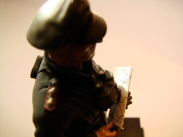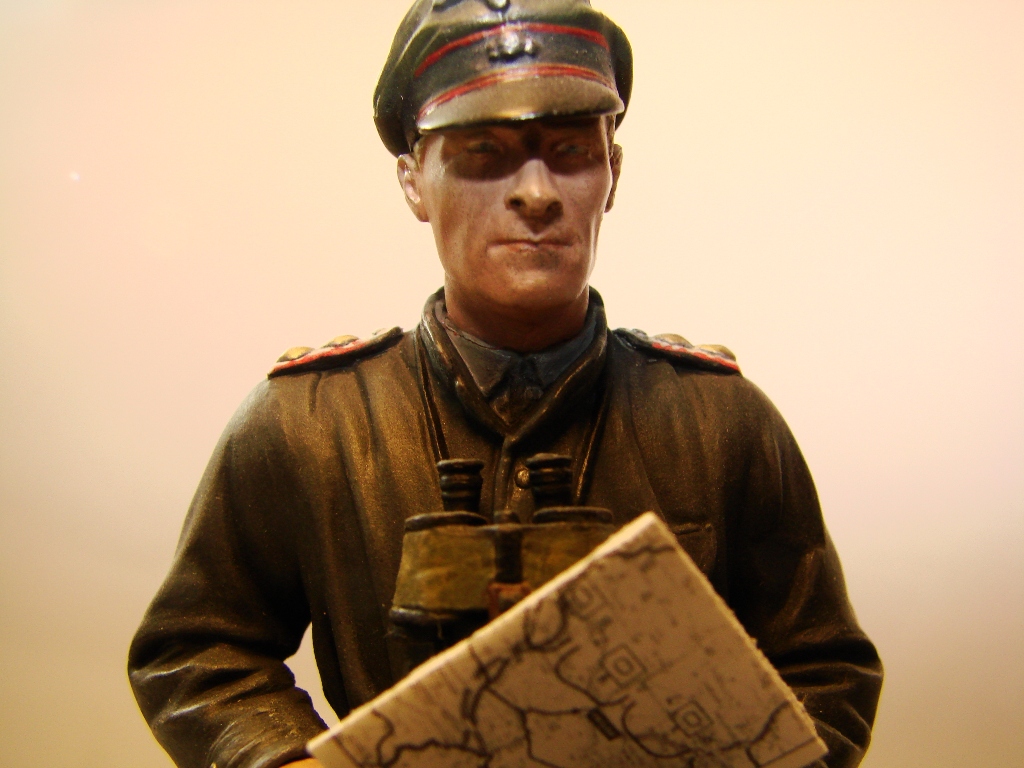 Масштаб 1/16. Оберштурмбанфюрер Joachim Peiper, Ardennes 1944г. Красил аэром эмалью от Тамия, Акан. Из дополнений - стекла на бинокле вырублены из прозрачной упаковки.