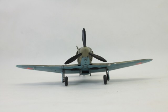 Но есть масса неточностей: цвет разводов камуфляжа по идее должен быть черным; сколы как-то не логично выглядят; классическая ошибка на МиГах - переплета козырька фонаря не было; там стык панелей просто; расшивка от патрубков не верна; входные срезы заборников маслорадиаторов должны быть направлены в разные стороны; если даже патрубки рассверлены, то нужно было третий патрубок добавить с каждой стороны, он должен слегка выглядывать из обтекателя; вместо фары на левом крыле скол; не совсем верная расшивка посадочных щитков; неверная расшивка водорадиатора; при такой ободранности выхлоп не помешал бы; ну и еще по мелочам