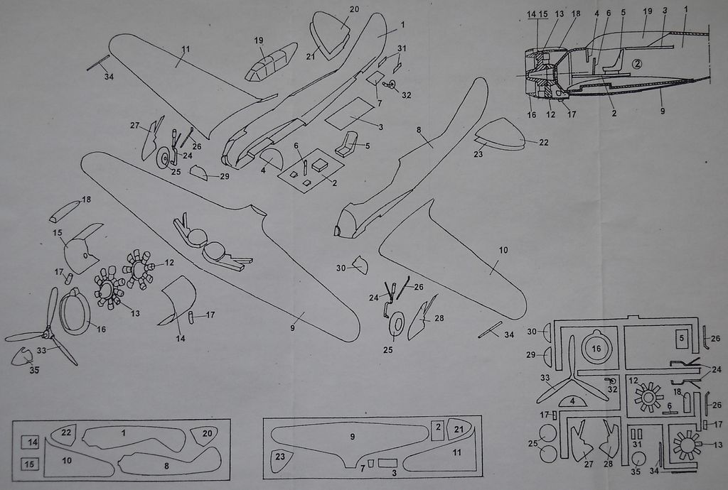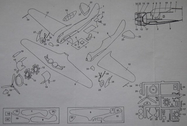 Вакуумформованная модель упакована в полиэтиленовый пакет. Масштаб 1/72, номер по каталогу MS-88. Фюзеляж, крыло, стабилизаторы, капот отформованы из листового пластика толщиной 0,8 мм. Большая часть мелких деталей даны на литнике ЛНД. Качество их не "на высоте": присутствует облой, часть деталей придётся заменить. Ваку-фонарь кабины выглядит вполне нормально. Инструкция по сборке и окраске достаточно наглядна и информативна. Декаль хорошего качества на один вариант.