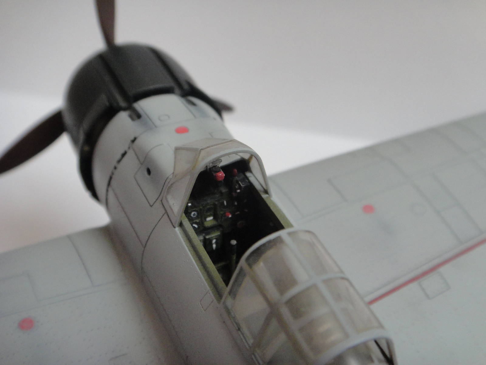 Кабинет хорош, только что за подушка на кресле? С фотографии музейной машины?Двигатель хорошо вышел и отлично с металиком на винте! Вот только с тыльной стороны промах - если найти фото с черными лопастями - будет прорыв в теме Зеро)