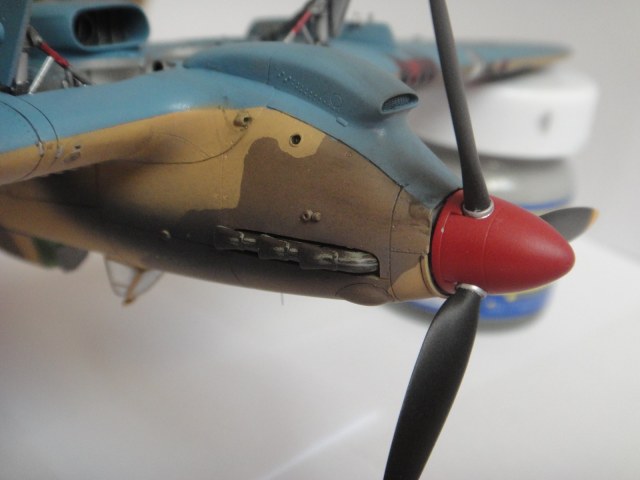 Вот ещё одно, с бомбодержателем вариант! на нём не 12 пулемётов, а 10... 2й номер каждого крыла снимался и крепился сам бомбодержатель. во многих случаях на порты стволов наклеивалась защитная плёнка от пыли и мусора. Так как его там нет, значит и плёнка целая.