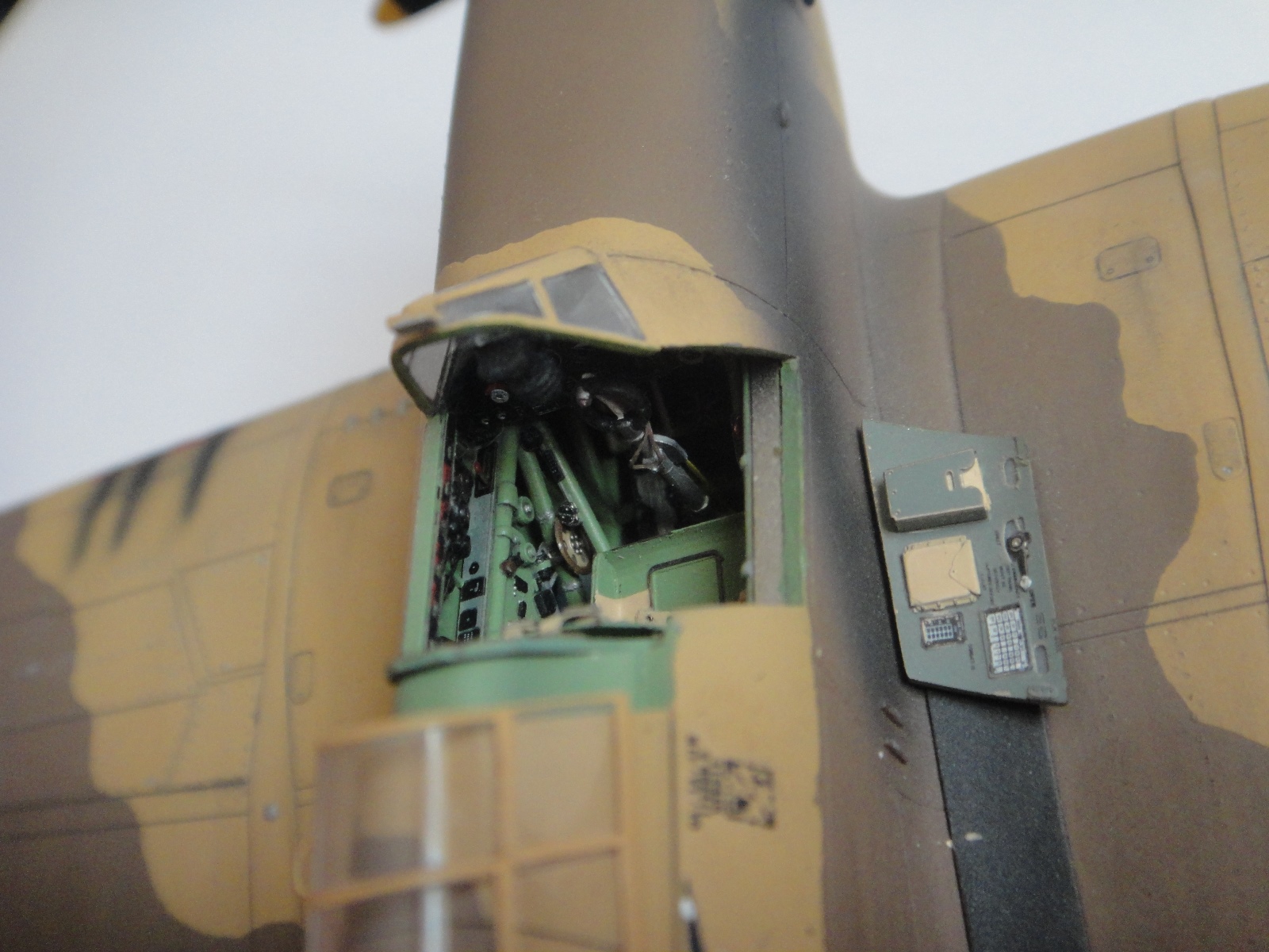 Хорошая работа. Аккуратно собрано, красиво покрашено. Одним словом - нравится. Может быть только следы нагара на нижней плоскости крыла надо наносить с учетом воздушного потока. К вам вопрос: на фото №5 откидной борт давался уже готовой деталью крашенной, или это афтемаркет приклеенный вами?