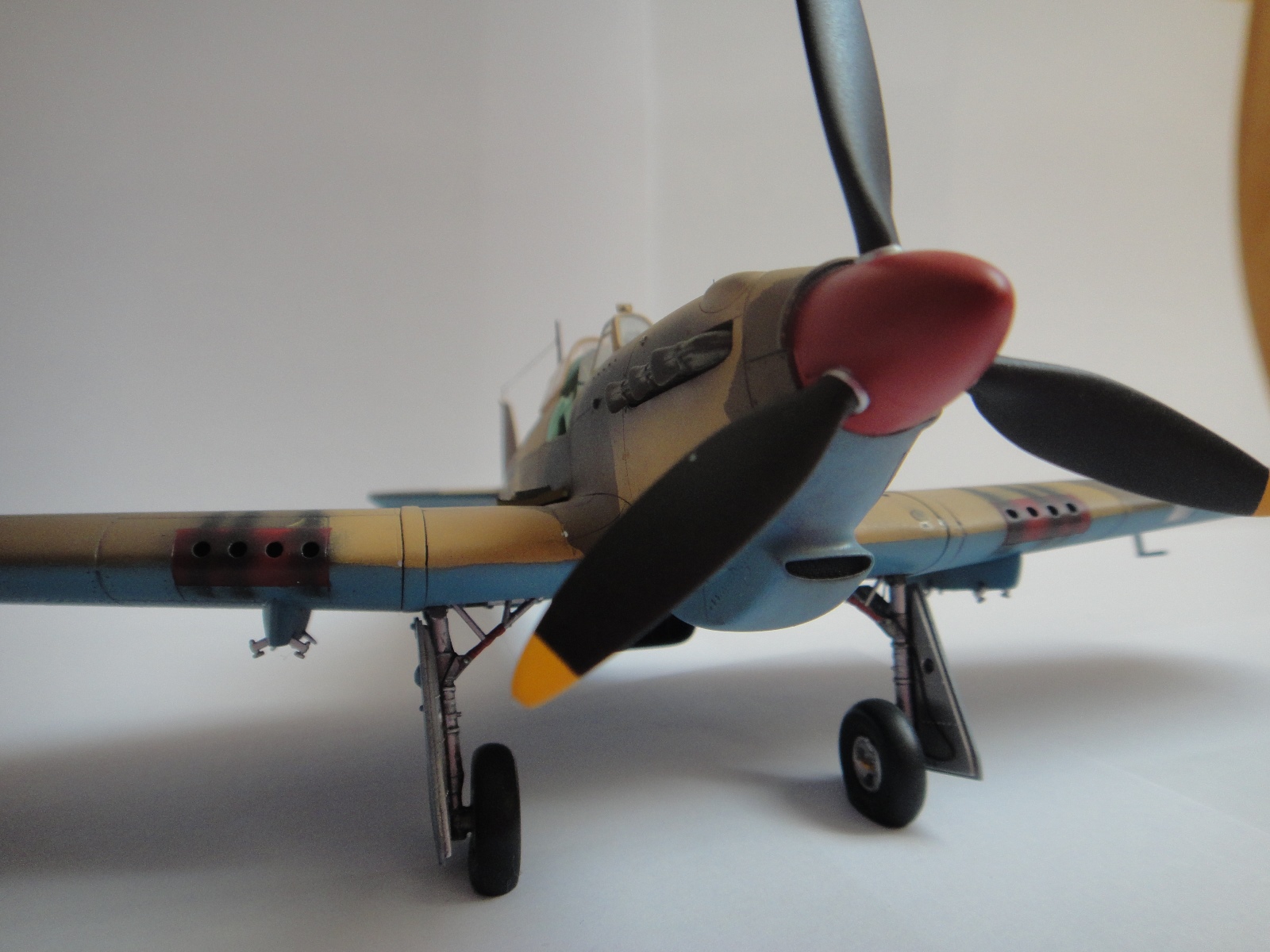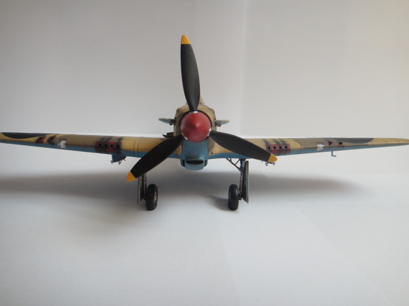 Добротная модель и добротный окрас!Левое колесо немного "гуляет",но это поправимо.Выступали ли внешние пулеметы?Да,крыло имеет "стрелку",но и судя по гильзосбросам,база стволов,смещена назад.Есть у кого историческое фото тех лет? Инфу ищу для будущей стройки.И да,кто поможет с приобретением Хася МкIIb троп в 48? Исчезли везде.Редко встречаются в украинских инетмагазинах,но они в РФ не высылают (события на Украине,не причем)