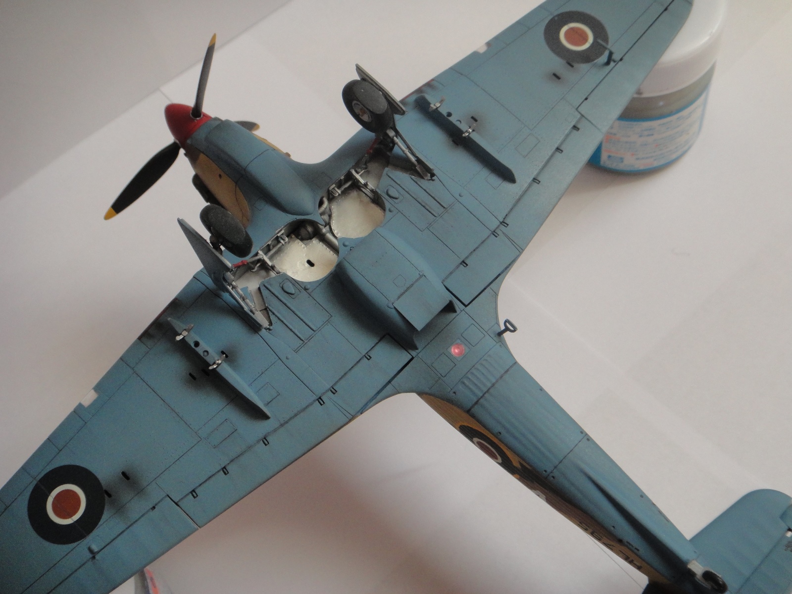 На спите всё шло хорошо,до момента снятия масок.Побоялся царапнуть фонарь и видимо не до конца прорезал ЛКП,когда потянул маску,краска сошла чулком не только с фонаря,но немного с близлежащих областей фюзеляжа.Облом непередоваемый.Всё подправил,но не нравится.На ланке несовместимость базовых цветов и финишного лака.В обоих случаях не охота возится с полезными мелочами на финише,модель то не оправдала ожиданий.А по поводу покупки нового хоррикейна сомневаюсь.Первую свою модель построил в 1980г.Потом естественно коллекция много раз начиналась с нуля и всё равно превышает все разумные размеры.Всё время выходит что то новое,а куда девать старое?Вот и мучаюсь с дровами.Не надо было жадничать,купил-собрал,потом ещё купил.