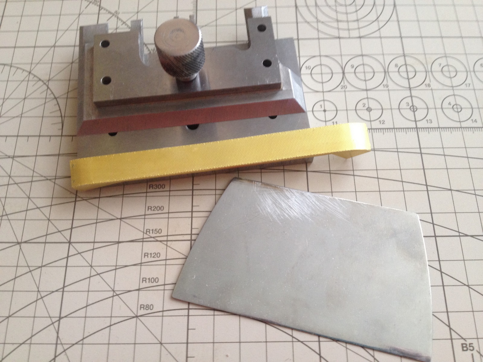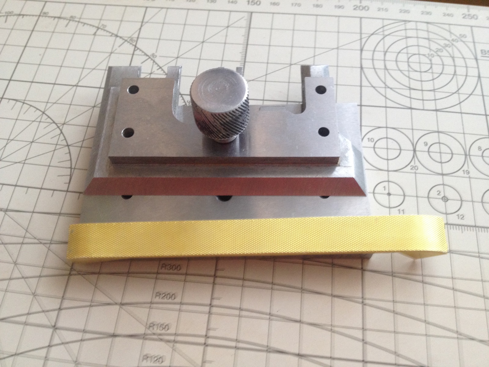 Здравствуйте. Увидев чертежи этой гнулки здесь на сайте сразу взял себе на вооружение. Очень полезная вещь) Хочу и вам предложить под заказ ее, размеры и метал договорные также как и цена. Единственное нет лезвия-я заменил на лезвие от шпателя аккуратно отрезаного.