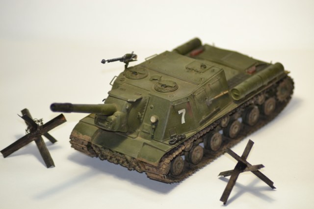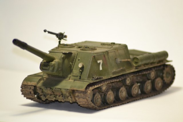 Здравствуйте уважаемые коропчане! Представляю вашему вниманию доработанную модель ИСУ-152. Как я уже говорил, модель собиралась хорошо, но были маленькие косячки. Но лично мне сборка доставила удовольствие. Модель окрашивалась акрилом от звезды, смывку делал тоже звездой. Грязь из земляного порошка. Сделал маленькие доработки. Вот вроде и всё. Что получилось судить вам.