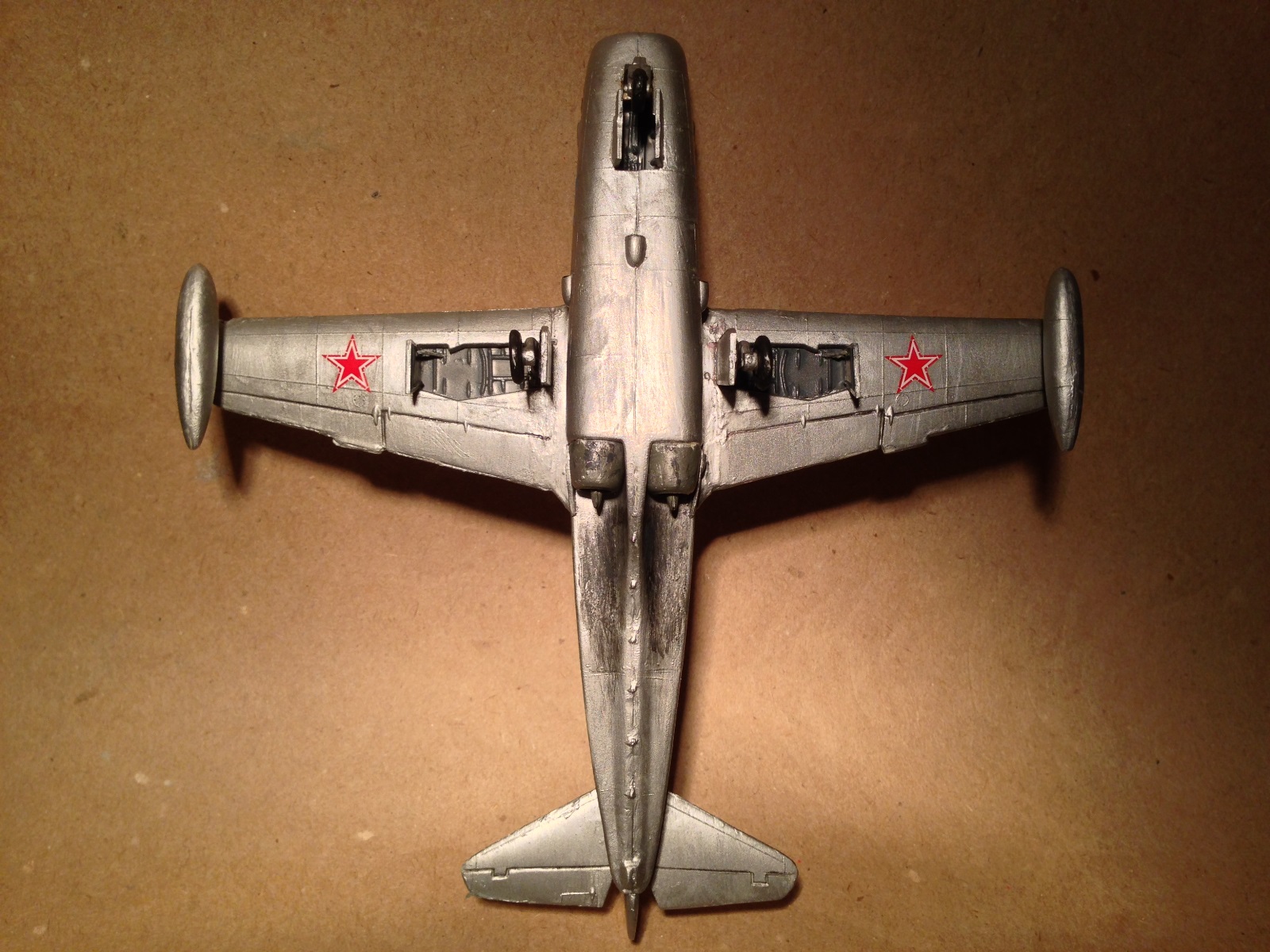 МиГ-9М, покупался и собирался в 2002 году, когда интернетов у меня не было, а о технологиях окрашивания знал только понаслышке. Одна из техник применённая - выделил рулевые поверхности карандашом. Матчасть никакая, собственно говоря как и сама сборка, щели кое как шпаклевал, по моему пластилином. Стоит меня понять, в 2002 году я ещё учился в 10 классе и хотелось просто собирать модели for fun =)