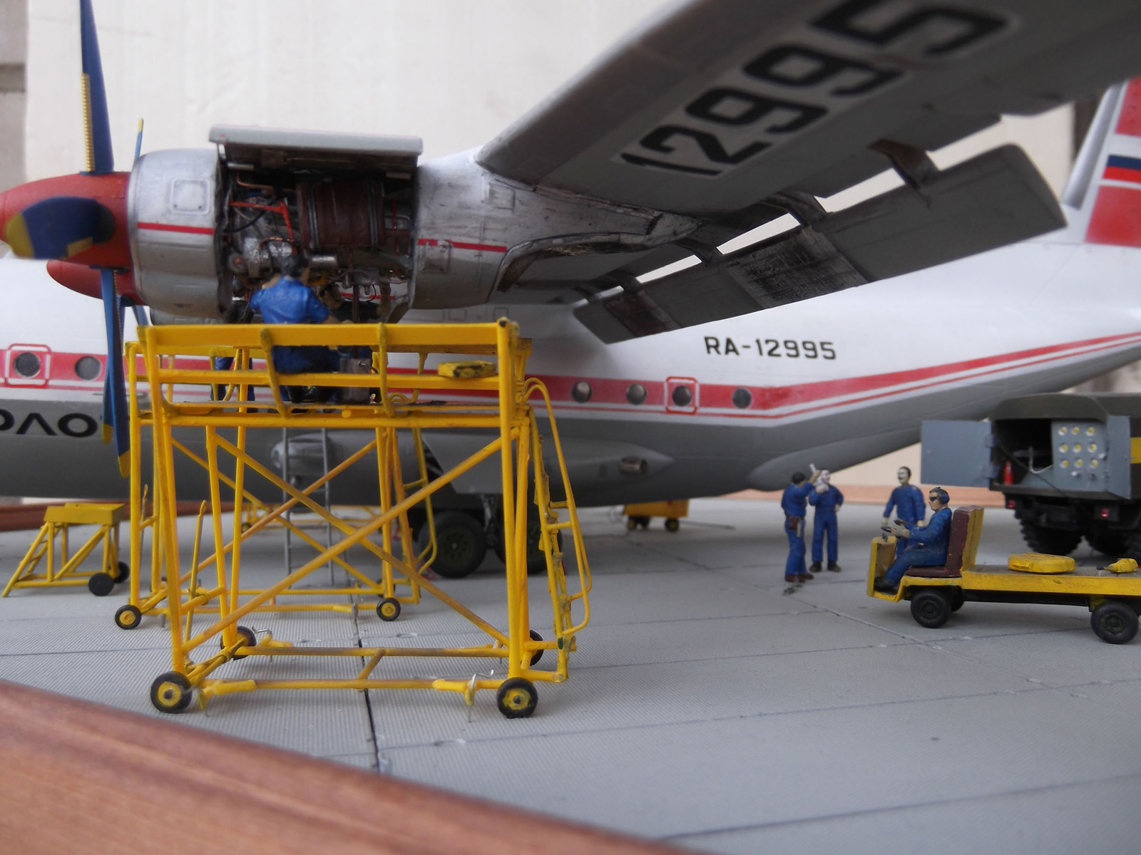 У Италовского фигурки на подложке и не обрабатываются. Борт этот принадлежал Питеру, и какое то время я на нем работал, прибористом который подходит к маленькой стремянке, а за плечом у него КПУ-3. Стремянки двигательные у нас тоже такие были, я хотел сфоткать живую, но уже все порезаны давно. Так что, спрашивайте, комментируйте, кидайтесь табуретками и т.д. Куда ее, в авиацию или в диорамы, я не знаю. Решайте сами. Приятного просмотра. Да, чуть не забыл. Sorry за фотки, за пейзаж. О фотосессии где-то речи быть не может, все на подставке стоит не приклеено. Фоткал на балконе. Только сегодня не было такого ветра. А первая попытка была неудачной, при выносе на балкон порывом все снесло, хорошо самолет не улетел, правда был потерян левый стеклоочиститель. Я и забыл об этом и сфоткал сегодня без него. Потом поставлю. Всем приятного просмотра.