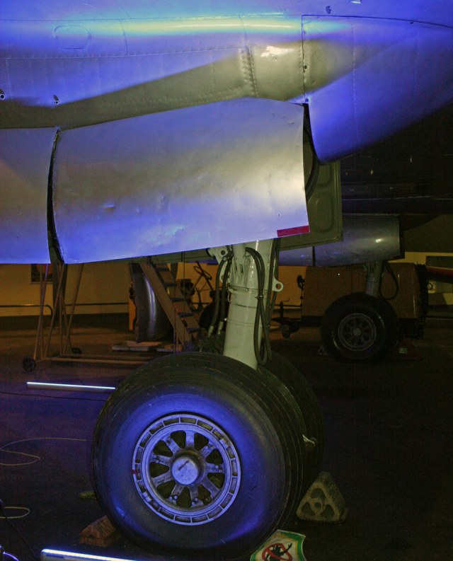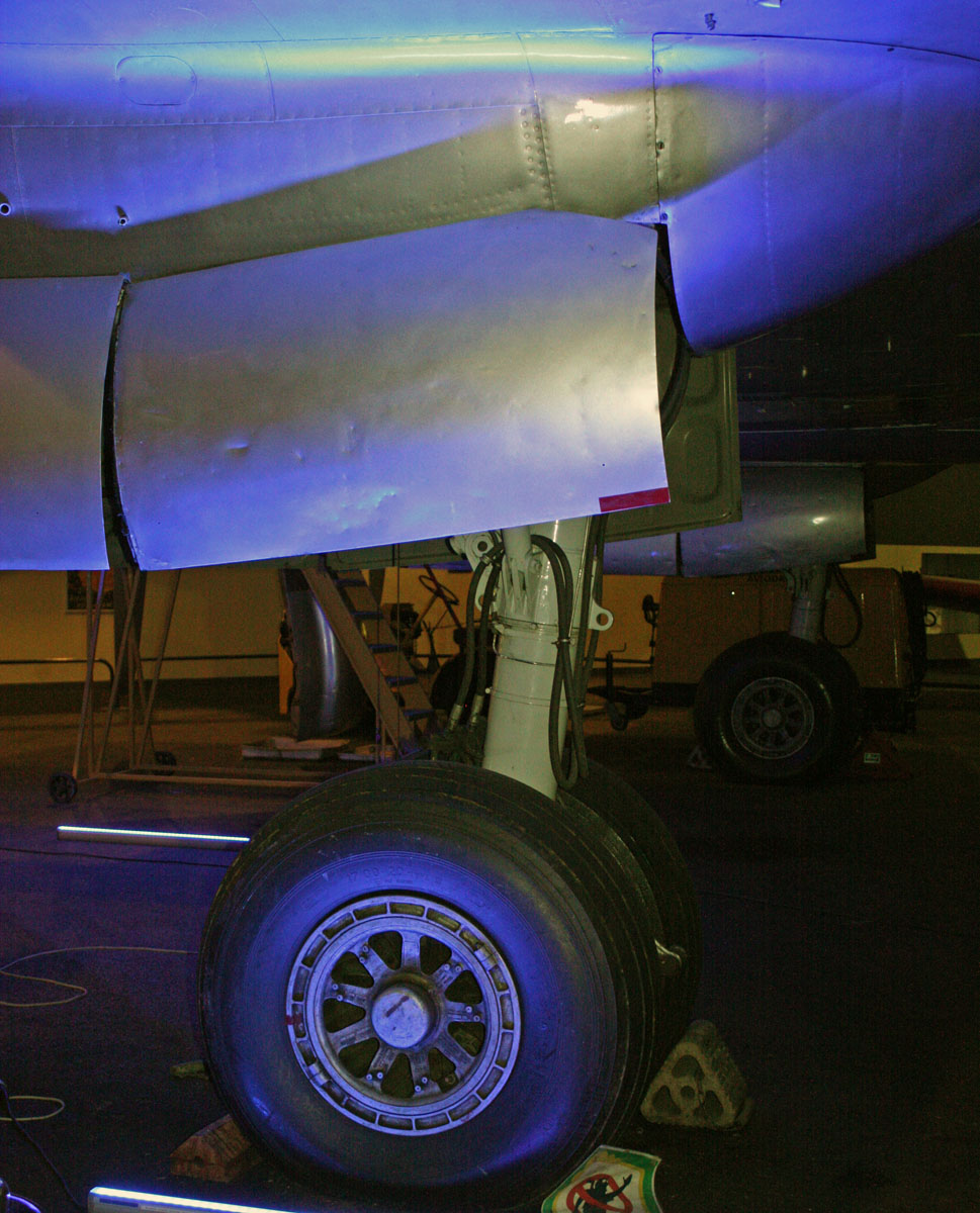 Как лучше снимать в условиях, когда зал тёмный, а самолёт точечно подсвечен, да ещё и цветным светом? Здесь как раз были такие условия: полутьма, и ярко-синяя подсветка снизу. Как в фотошопе не боролся, вытянуть фотографии так и не смог.