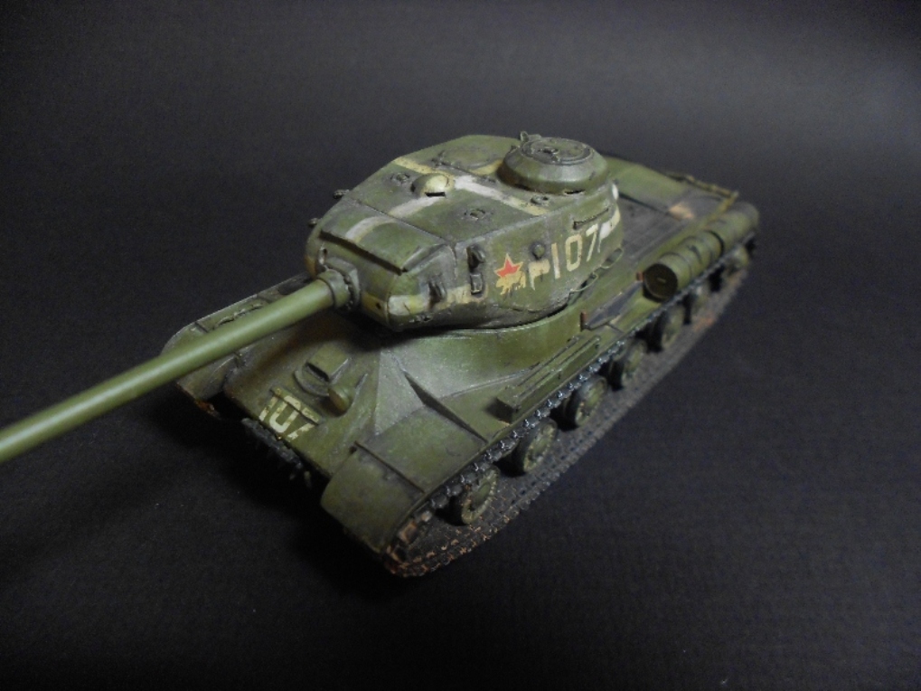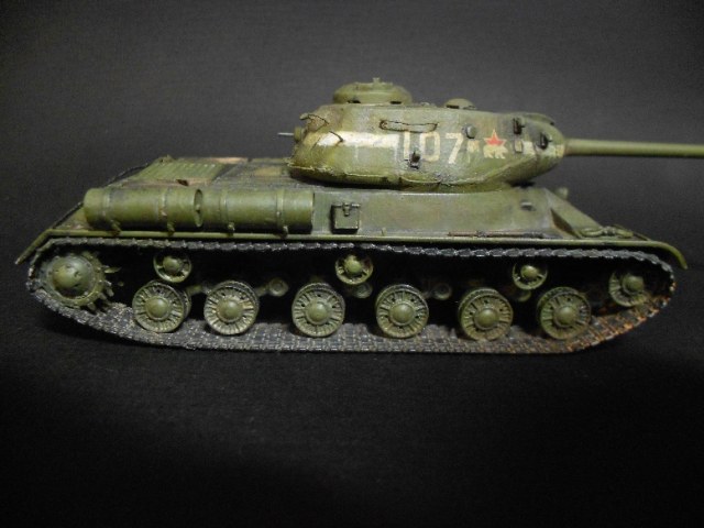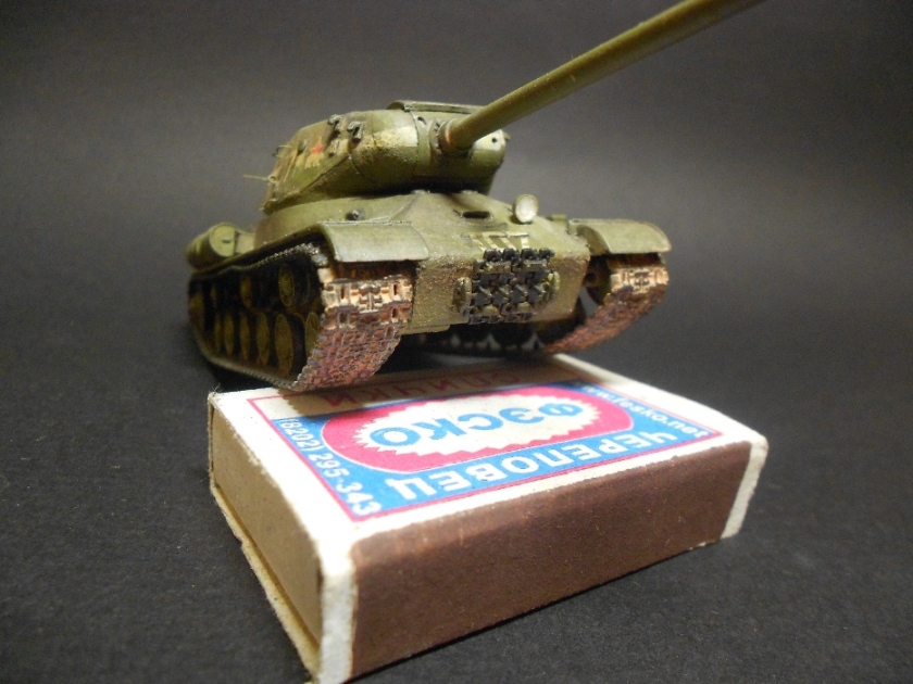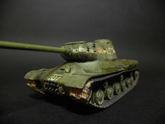 Всем доброго времени суток. Ну вот, господа, и завершил я свой ис-2 от Звезды в 72. Модель понравилась, доставила удовольствие. Строил я его около полугода с четырехмесячным перерывом. Активно работал в последний месяц. Хотелось сделать машину, недавно прибывшую на фронт, которая не успела сильно потрепаться в боях и сохранила крылья, надгусеничные полки и т.д, но в то же время изрядно припылилась берлинской пылью. Никакой афтермакет для модели не покупался, по сути она изкоробочная, но множество доработок сделано своими руками. Постараюсь перечислить все, ибо уже многие мелочи позабылись. Переделал фару, рассверлив ее и вставив внутрь кусочек фольги и "застеклив" пластиком, сымитирована фактура литья в земляную форму, сделаны кронштейны на борту башни для транспортировки ДШК, сделаны пистолетные порты, заменены крепления дополнительных баков, кормовой пулемет заменен на иглу, сделаны литьевые номера на корме и "щеке" башни, трос заменен на самодельный, переделаны крепления троса, сделаны поручни из проволоки, рассверлены ствол, выхлопы, смотровой прибор механика-водителя, сделан козырек над маской орудия, "пулеотбойник" у смотровой щели, сделаны литьевые швы на дульном тормозе, ну и еще множество доработок по мелочи. Красил чудо-прибором - зубографом акрилом от Валехо, Звезды, Тамии. Приношу извинения всем, кто поставил оценки и прокомментировал эту модель ранее. Ту публикацию я, к сожалению, удалил.