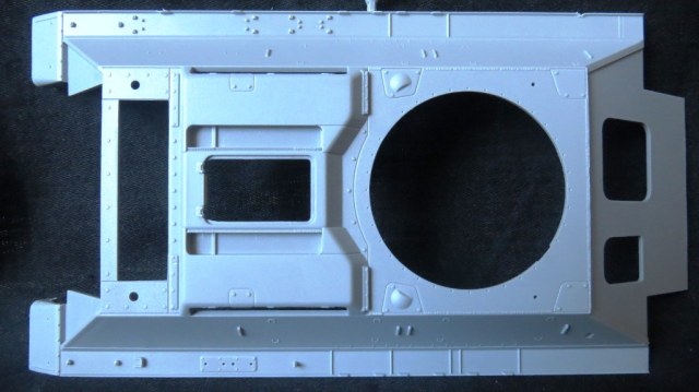 На прозрачном литнике видим стекло для фары и два смотровых прибора.Так же весть 5 отдельно запакованных траков для крепления на броню.Ствол выполнен одной деталью.Нижняя и верхняя части корпуса.