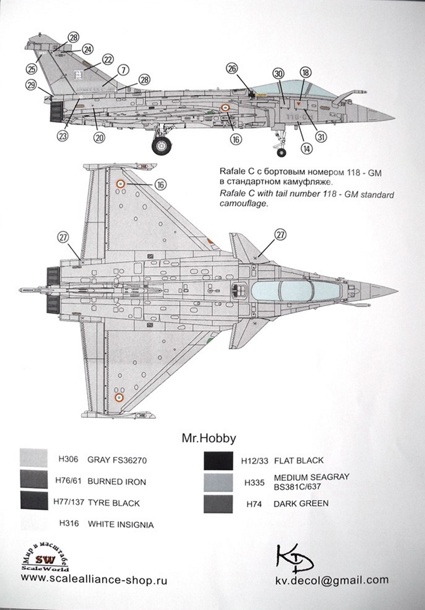 В 2012 году легендарному полку «Нормандия-Неман» исполнилось 70 лет. В честь юбилея, один из самолетов этого полка обновили, нанеся юбилейную окраску. Разработана декаль для модели Rafale C в масштабах 1/72 и 1/48, выпускаемые фирмой Hobby Boss. Это стало результатом сотрудничества компании «Мир в масштабе» с Валентином (ака Любитель), известным выпуском декалей под маркой kv.decol. Разработчик уделил большое внимание проработке всех деталей и мелочей, которые необходимы для максимальной копийности.