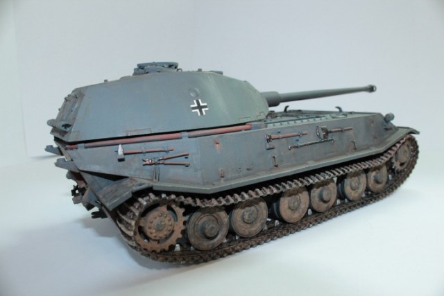 Мне кажется или задние рымы расположены на разной высоте? Так же на башне видны следы для приклейки каких-то деталей, скорее всего крюков для траков. Серый цвет сильно сомнителен, камо надо было брать от Тигра 2.
