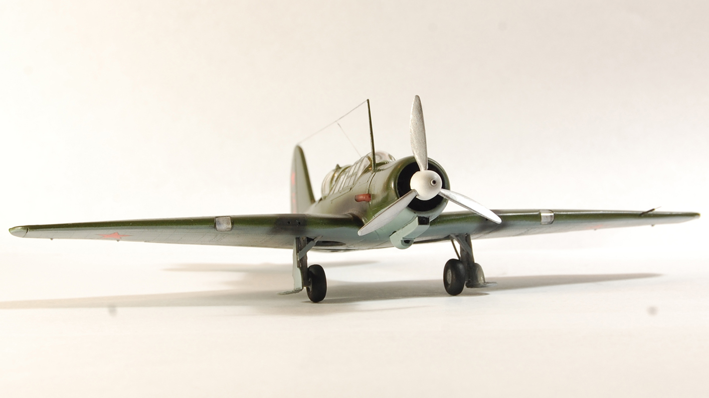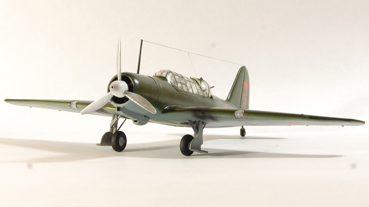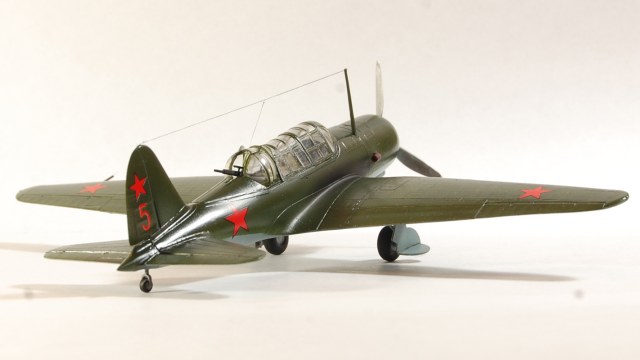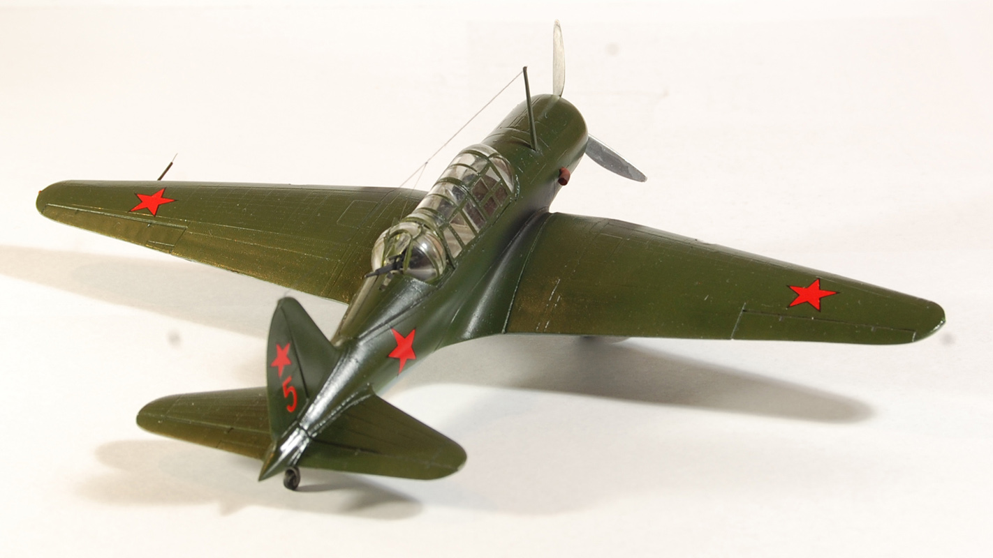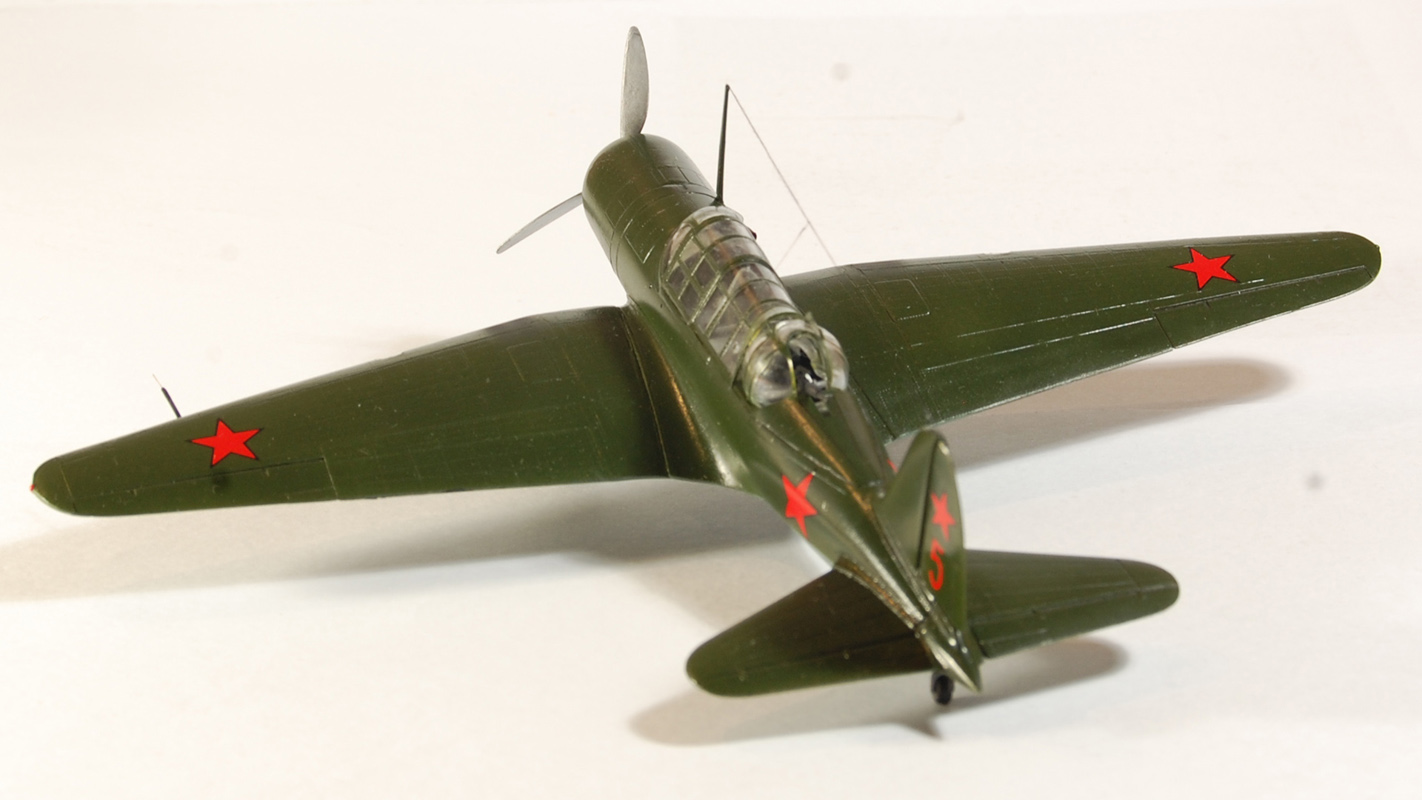 Не плохо,коллега! Сам такой только что сделал)))). Я бы заметил что не нужно было родные звезды клеить...на киле особенно видно смещение цвета,белые канты. Мачту бы покороче,стенки бы на ниши шасси, и винт сзади красился на 2 трети черным......