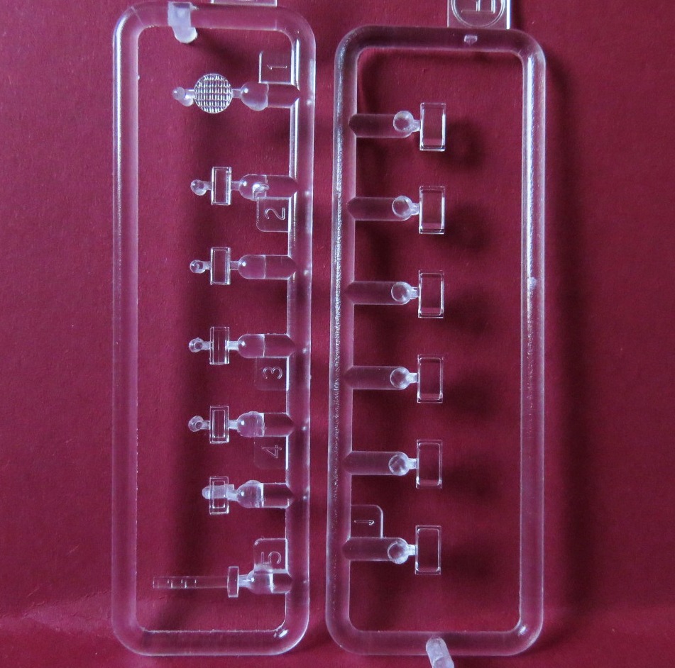 -2 литника прозрачного цвета,смотровые приборы и фара.