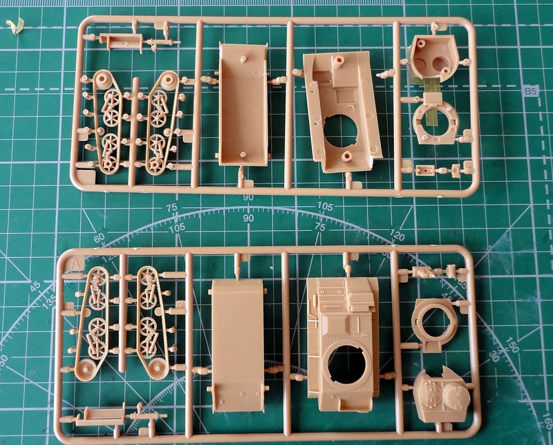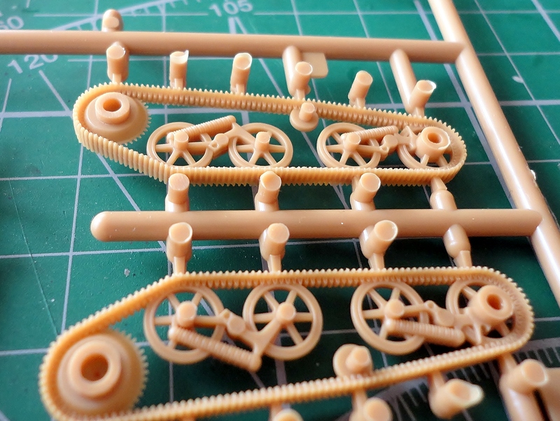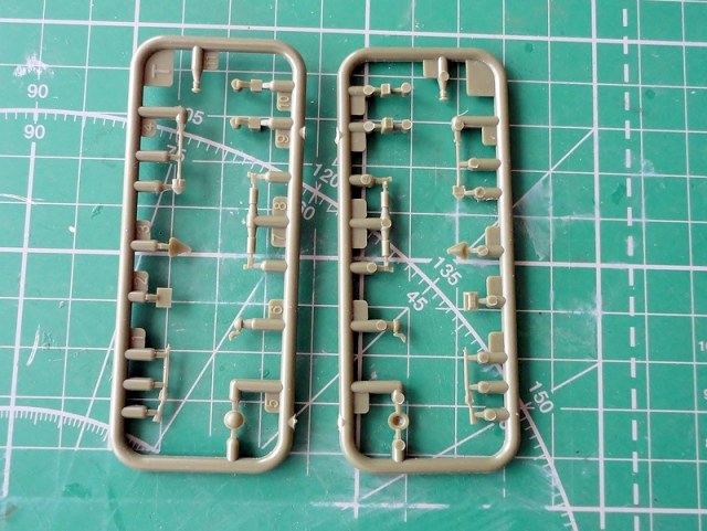 На основном литнике находится 10 деталей основных деталей корпуса и вооружение. На другом-"шанец", гранатометы ( так себе, по-хорошему менять), винтовка "Ли-Энфилд", тазик для бритья (английский шлем).