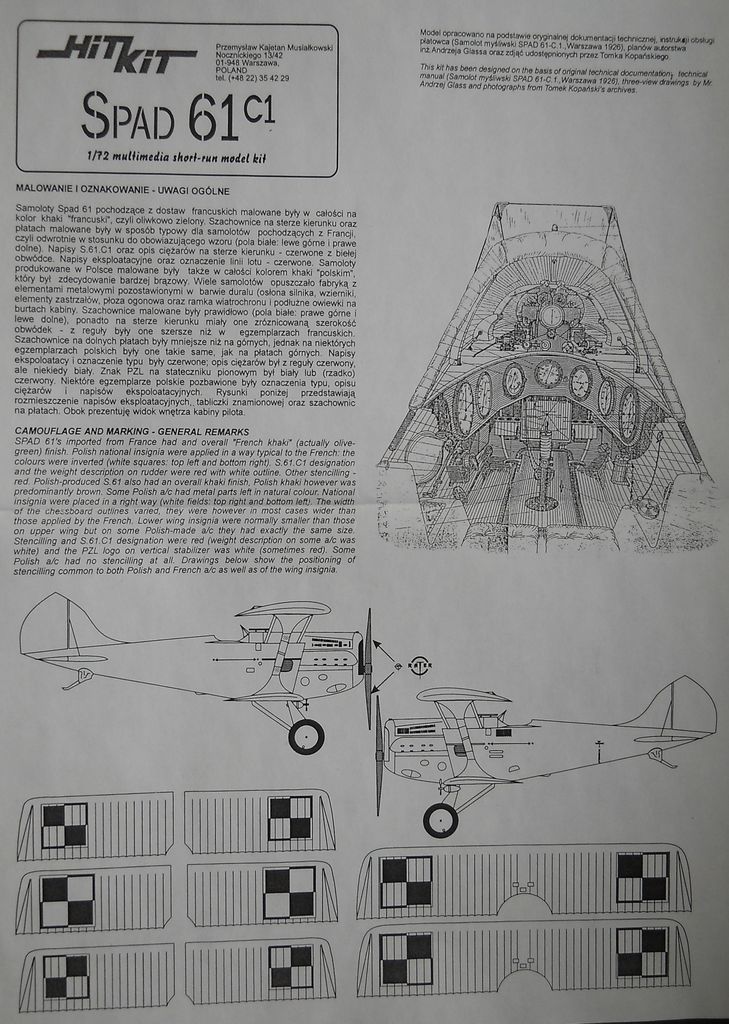 Модель от фирмы Hit Kitв масштабе 1/72 (номер по каталогу 7206) упакована в картонную коробку 27х21х2,5см. Шорт-ран довольно среднего качества, один литник серого пластика, присутствует облой. Хорошим дополнением служит плата с фототравлением от Eduard. Шкалы приборов и выкройка козырька даются на плёнке. Декаль богата разнообразием вариантов: 19 польских и один румынский. Инструкция достаточно проста и наглядна.