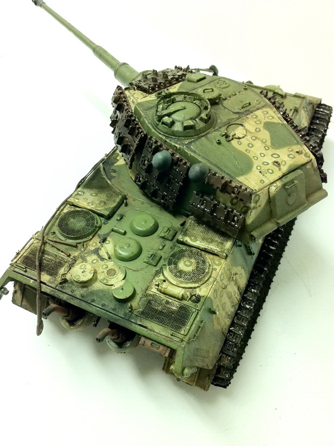 танк был куплен и собран в 2006 году на заре моего увлечения моделизмом. и стоял на полке до 14 года. Не так давно я решился на передел этой модели. Купил траки от Friulmodel травление от Aber. Краски от Tamiya, пигменты MIG, пастель, масленные краски. Насмотрелся на разные варианты комуфляжа и понравился именно этот. Вот и решил переделать модель координально. В мат часть не углублялся так как сторонник художественной стороны модели.