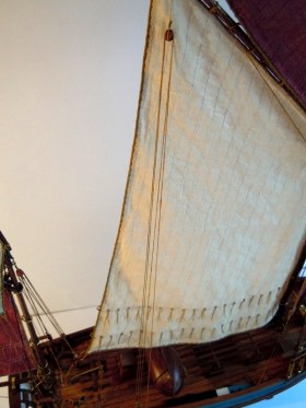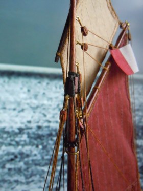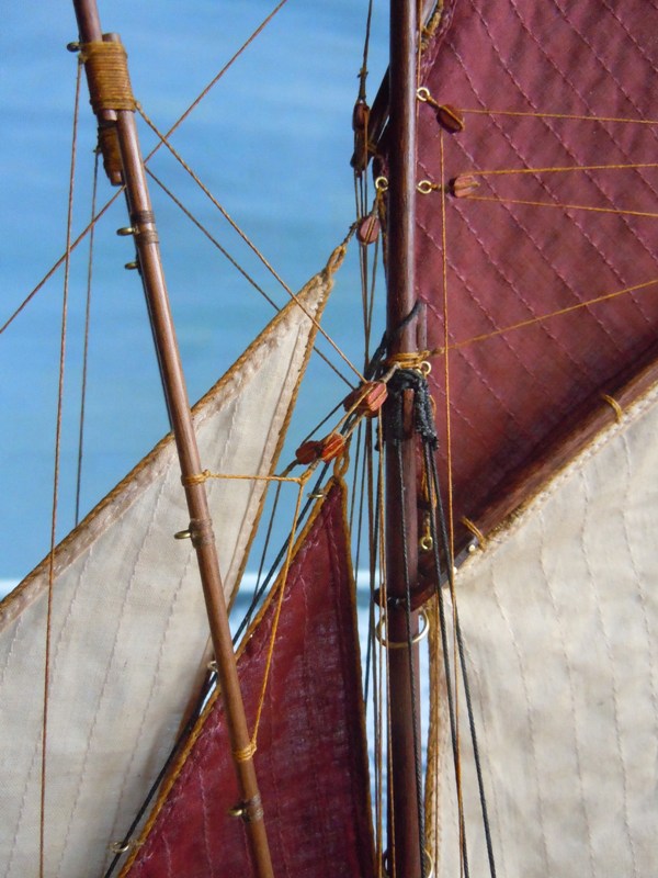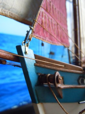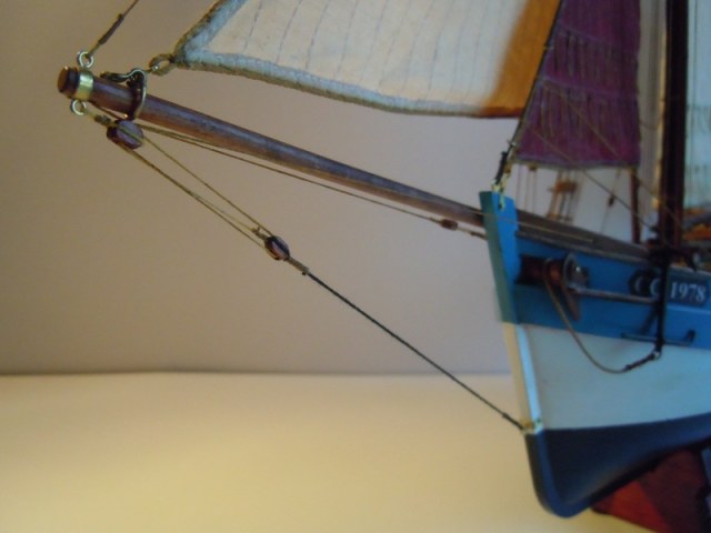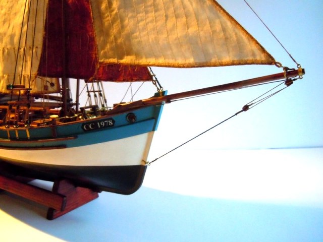 Схема такелажа вполне на уровне. Доделать пришлось ватер-штаг и топенант бушприта (на фото прототипа он часто в поднятом состоянии). «Неубедительным» показался узел проводки галса кливера, поэтому сделал его ближе к оригиналу как и грота-галс.