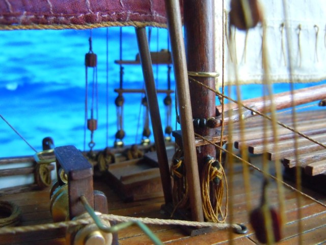 То как сделаны блоки и такелаж в целом, можно долго и с пользой рассматривать как наглядное пособие. Класс!