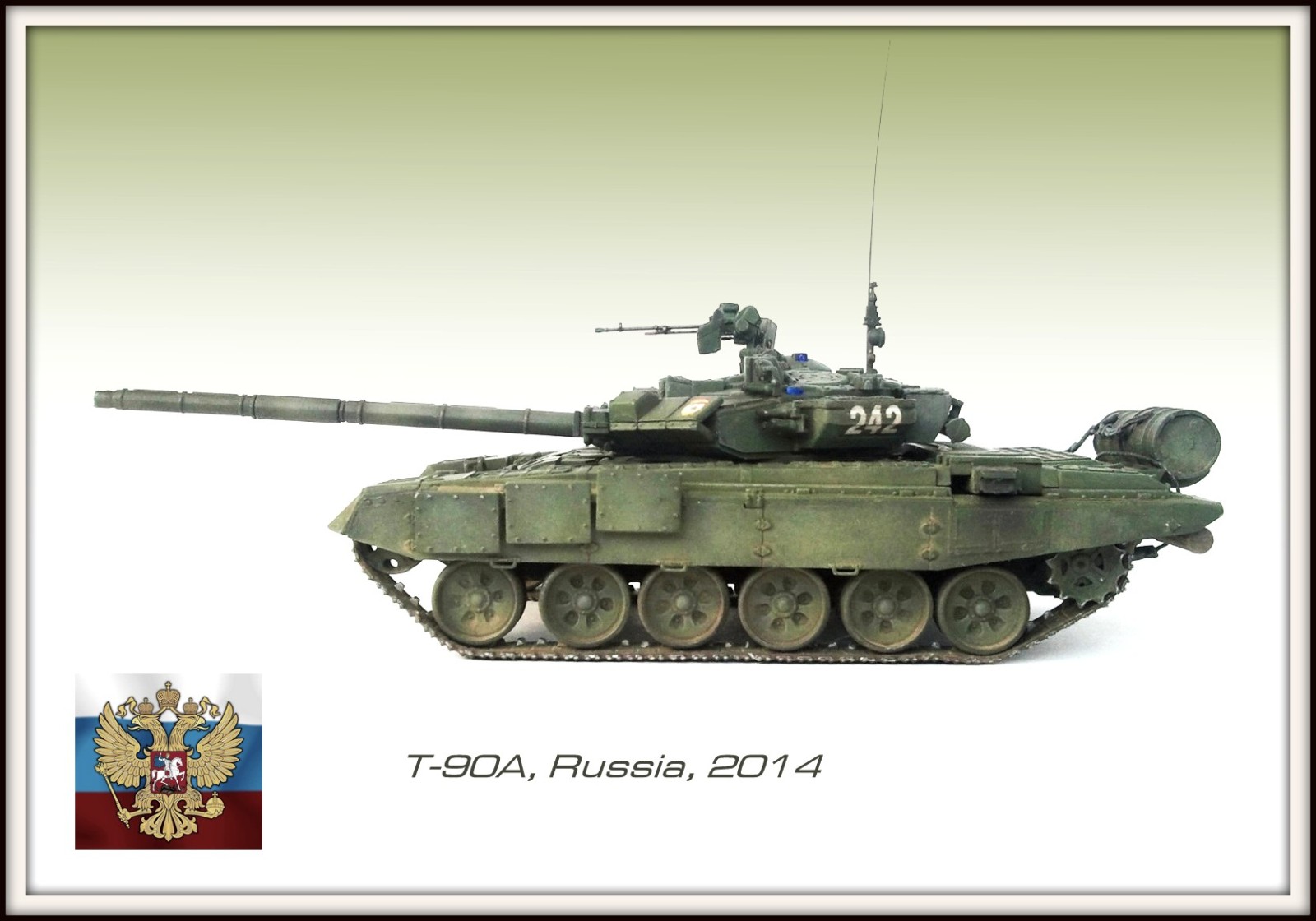 Модель Т-90А от ModelCollect, сборка - изкаробка, кроме топливопроводов (от Revell) и троса (самодел). Собиралось легко, по инстукции. Красил - акрил Tamiya, пигменты - Мастер Пигмент. Отдельное спасибо уважаемому OTEZ за редактирование моих фото! Вот вообщем и все, приятного просмотра!