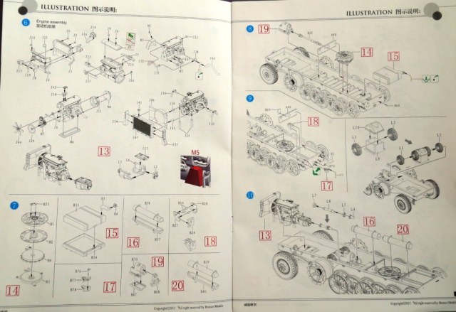 Бронковская коробка как всегда пришла мятая(можно и по плотней упаковку делать).Хорошее качество пластика,уверен стыковка то же на высоте.В наборе есть мотор ,трансмиссия проработка не плохая.