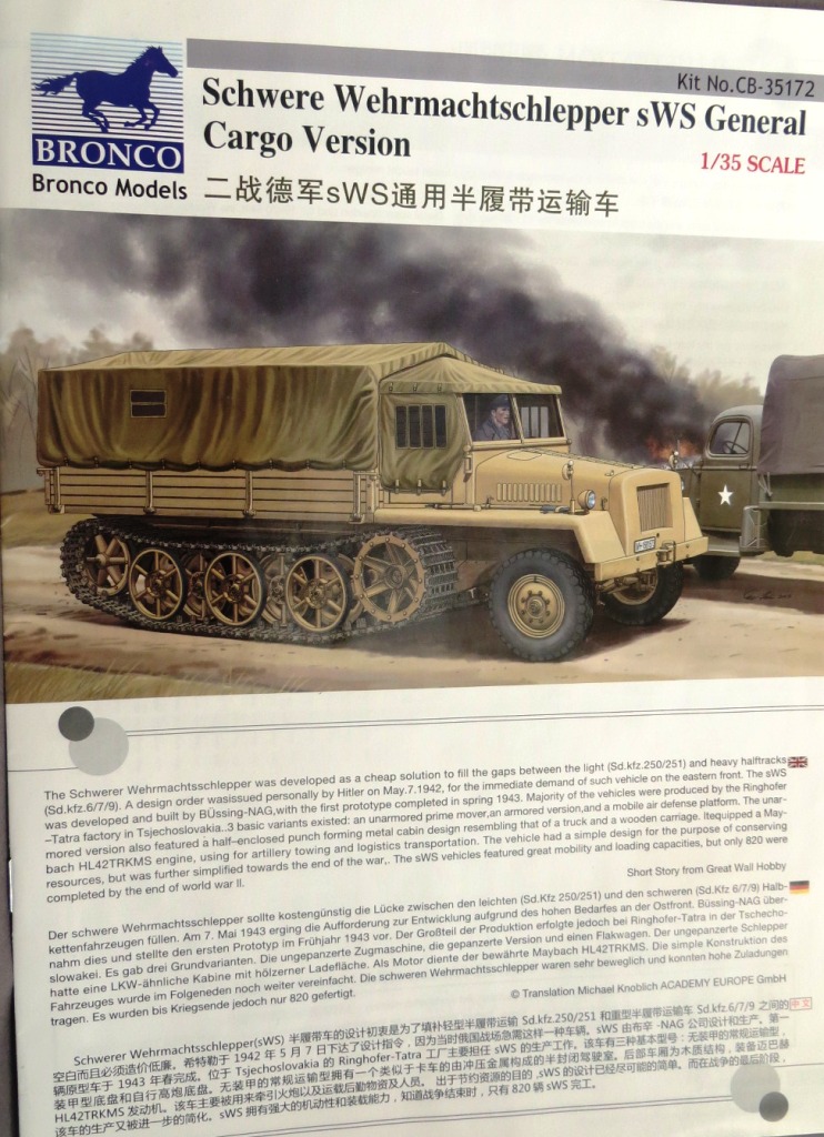 Появилась у меня вот такая интересная модель-Немецкий тяжелый бронетранспортер sWS (Schwerer Wehrmachtschlepper),в отличие от других немецких гусеничных машин имеет более широкие гусеницы. Ходовая часть бронетранспортера sWS напоминает конструкцию танка Panther.