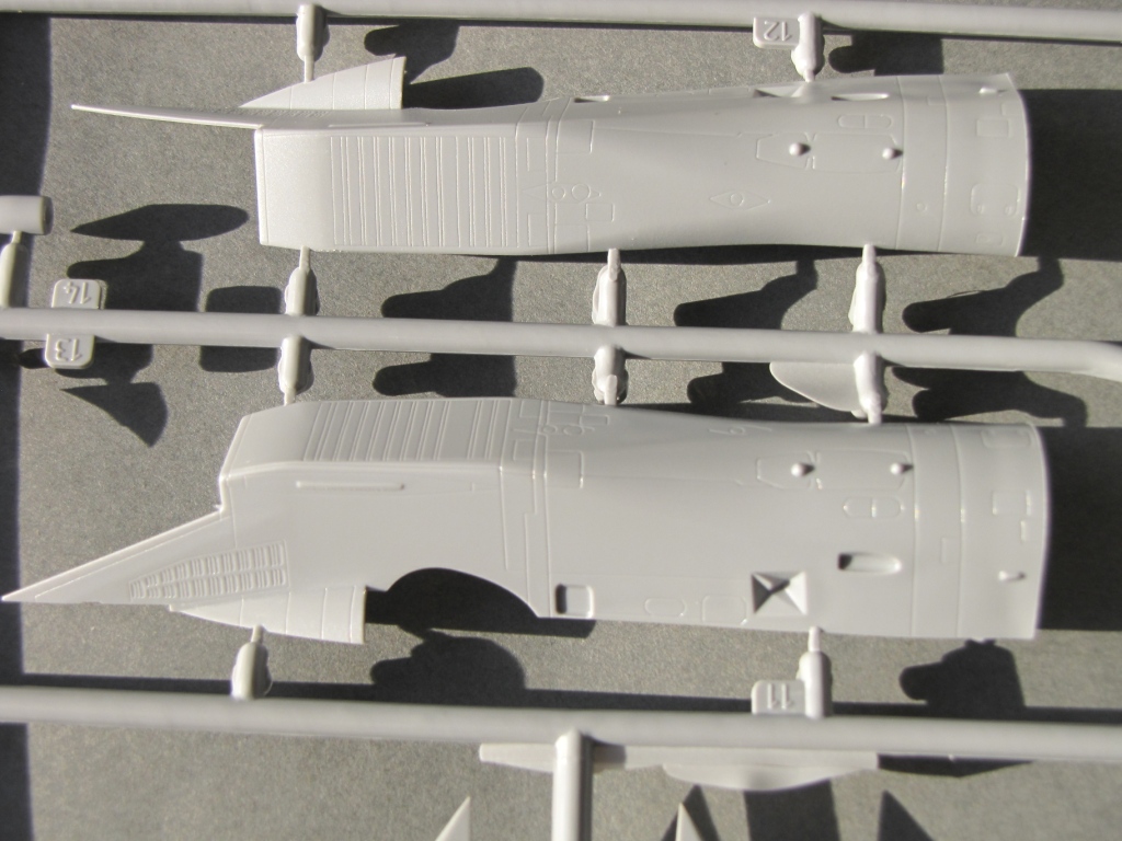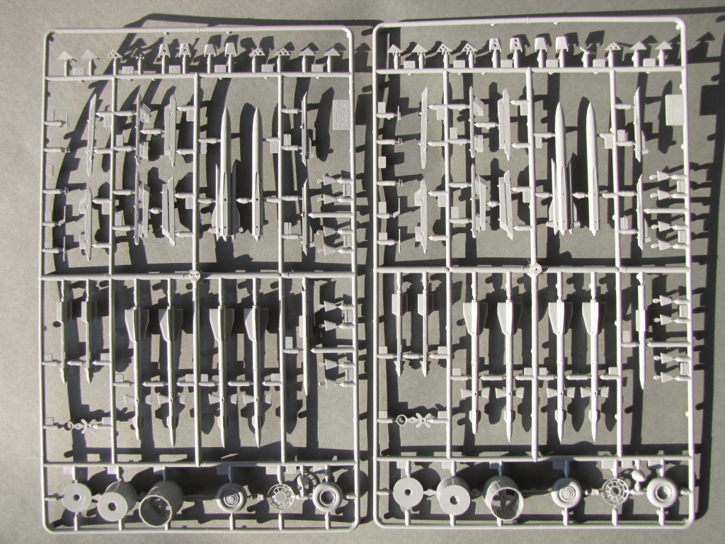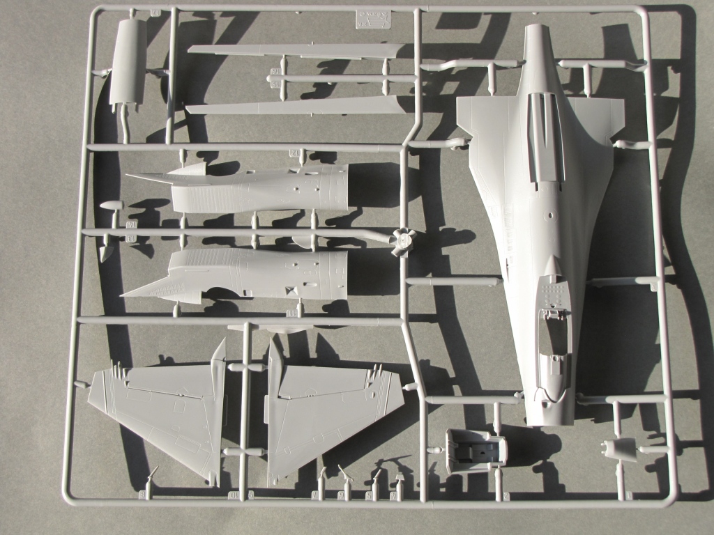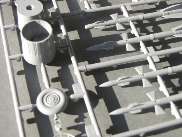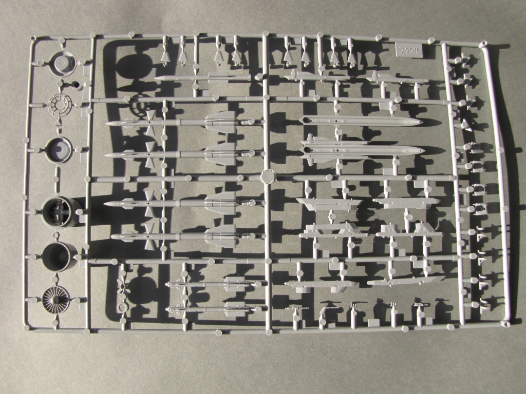 Понравилось вооружение, стойки шасси, сопла получше сделаны, чем у трубача. Порадовали лестница, заглушки и башмаки. Передняя кромка крыла сделано отдельной деталью, это хорошо, но тогда и флапероны тоже надо было делать отдельно.