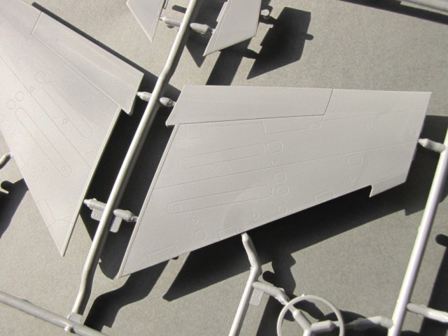 Многие скажут, что основной недостаток - это отсутствие клепки, тут надо пояснить, что есть сама клепка планера, ее почти не видно под краской, и делать ее или нет каждый решит сам, в 72 воспроизвести ее в пластике сложно, сделаешь масштабной, зальет грунтом и краской, побольше не масштабно, тоже нехорошо. А вот винты, которыми крепятся многочисленные лючки видно очень хорошо, и их отсутствие серьезный недостаток модели, тут придется провести вечер наедине с шилом и пластиком.