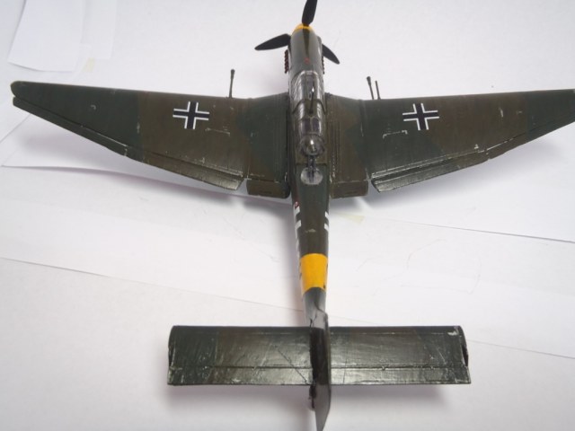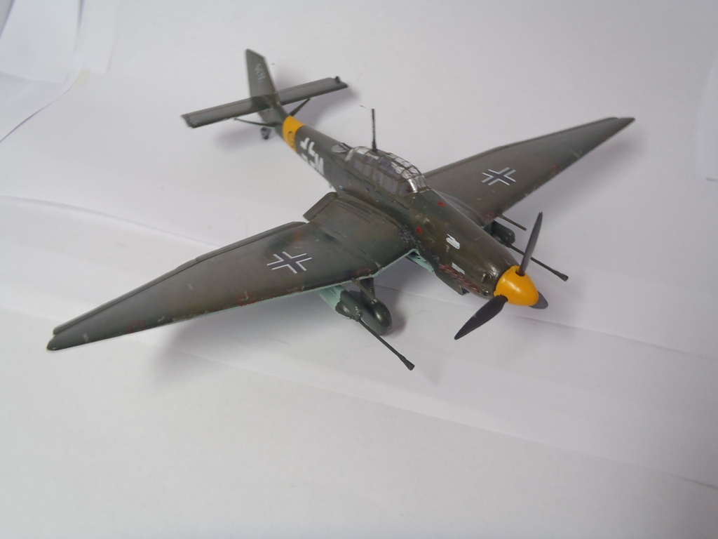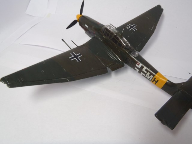 Впервые делаю модель...поэтому решил купил модель по проще,взял юнкерса масштаба 1/72 ,но кач-во модели и сходство хромает...по мизерному опыту выбирал и не знал что она такая никчемная будет:(в кабине нет ничего кроме кресла ,штурвала и наклеенной декали. так же в инструкции есть косяки и некоторая информация так же отс-ет,но я это понял когда уже был на середине работы....краски, грунт, шпаклевка ,лаки а так же скотч были от Тамия...делал в районе 3 недель...наносил цвета грунт и лаки кистью...поэтому косяков по неопытность валом....антенну делал из нитки от чулка(рвалась постоянно:D) от латуни не получилось(((вообщем критикуйте...буду внимательно читать и набираться опыта :-)
